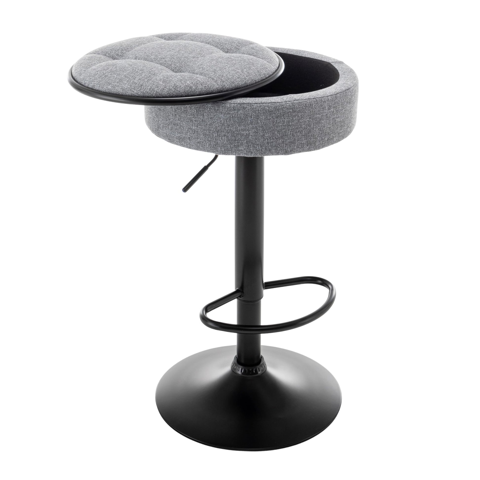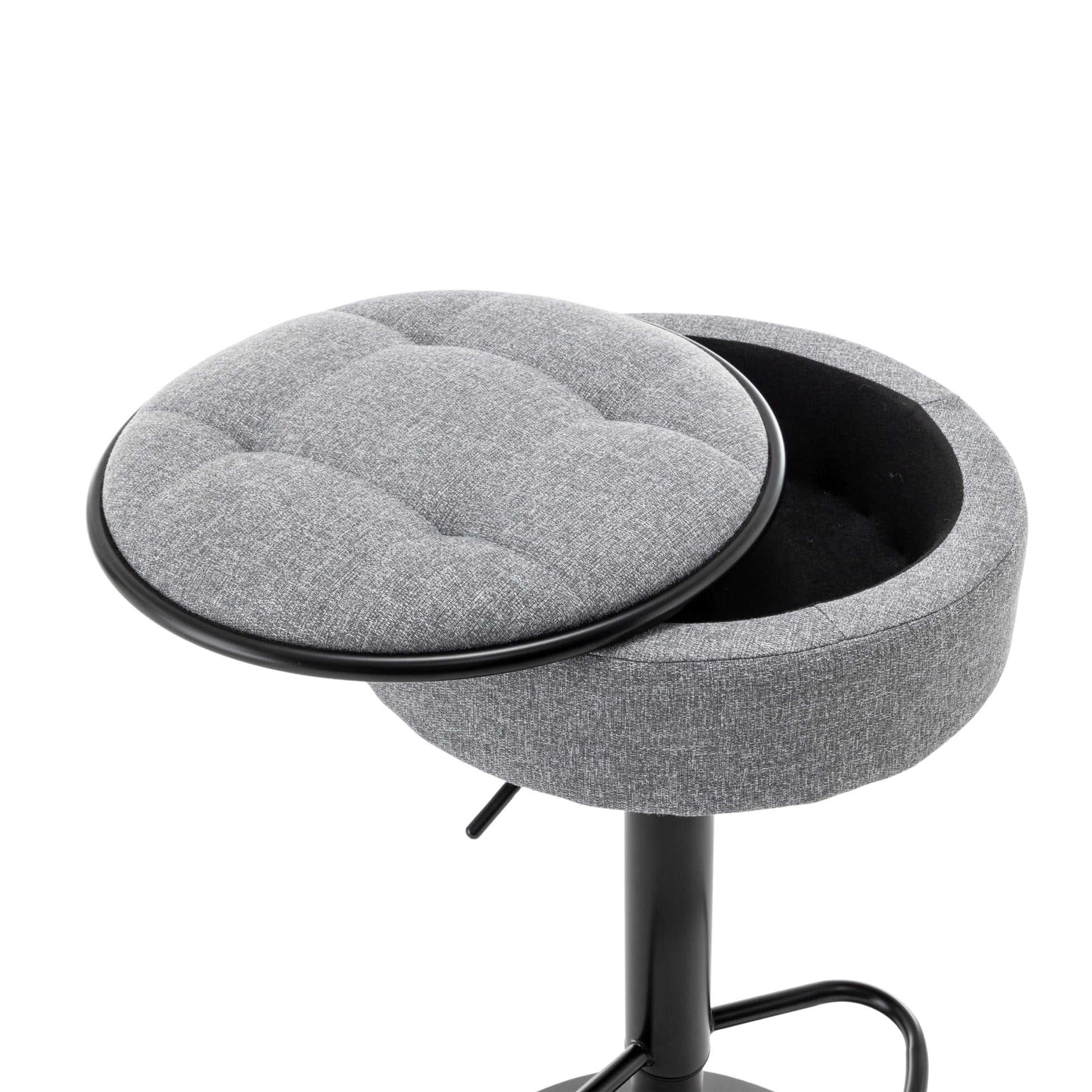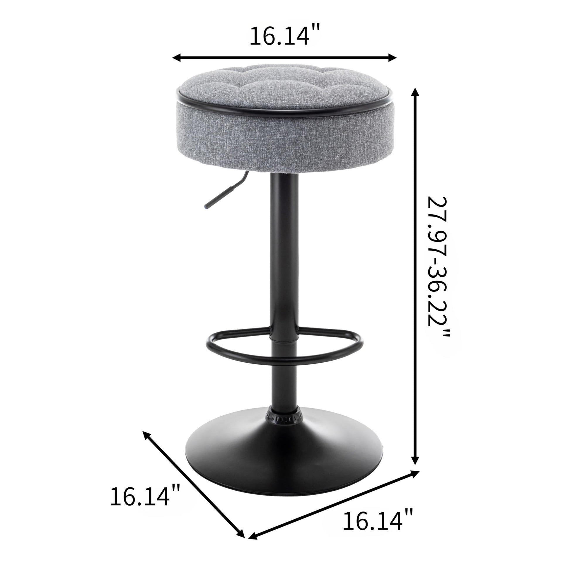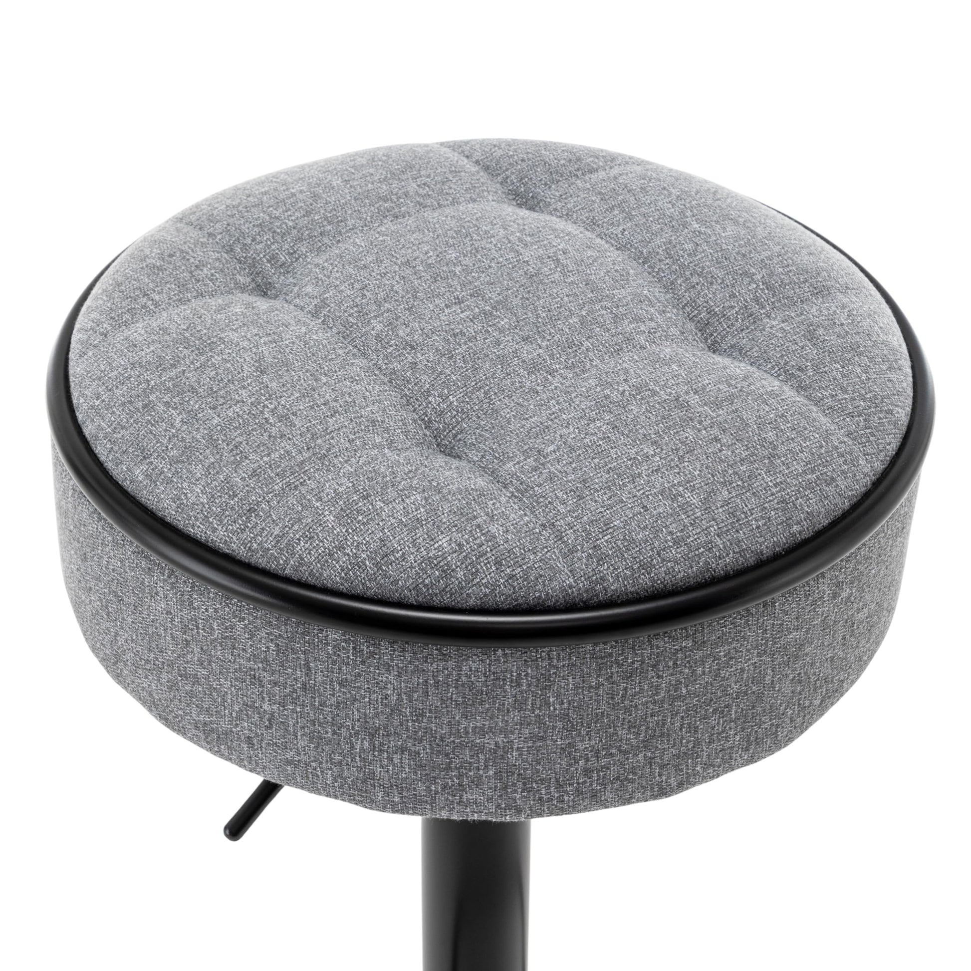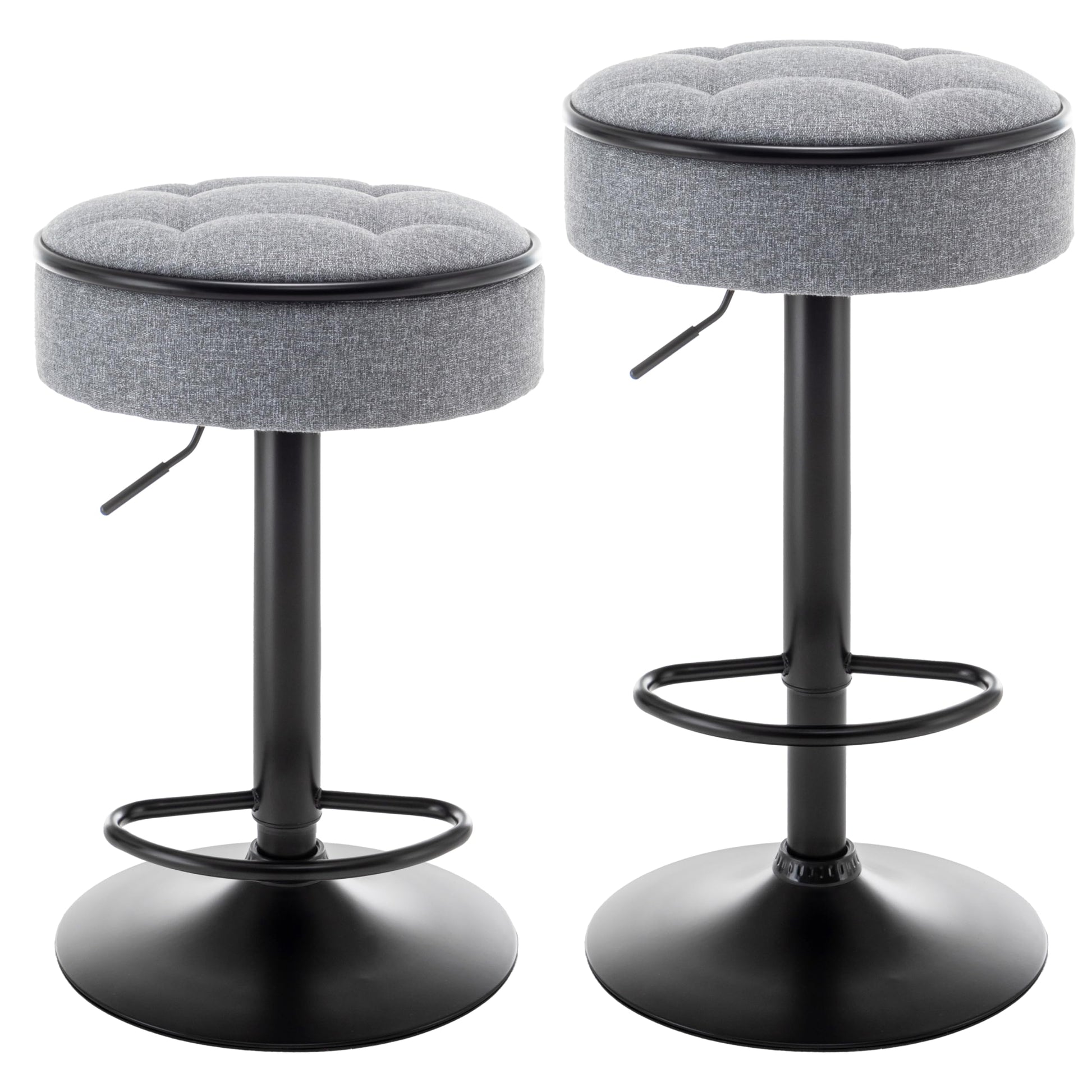COCONINO WJ Round Storage Bar Stool Set of 2, Adjustable Counter Height Swivel Barstool, Counter Height Backless Barstool with Metal Base for Kitchen Counter, Linen Fabric in Gray