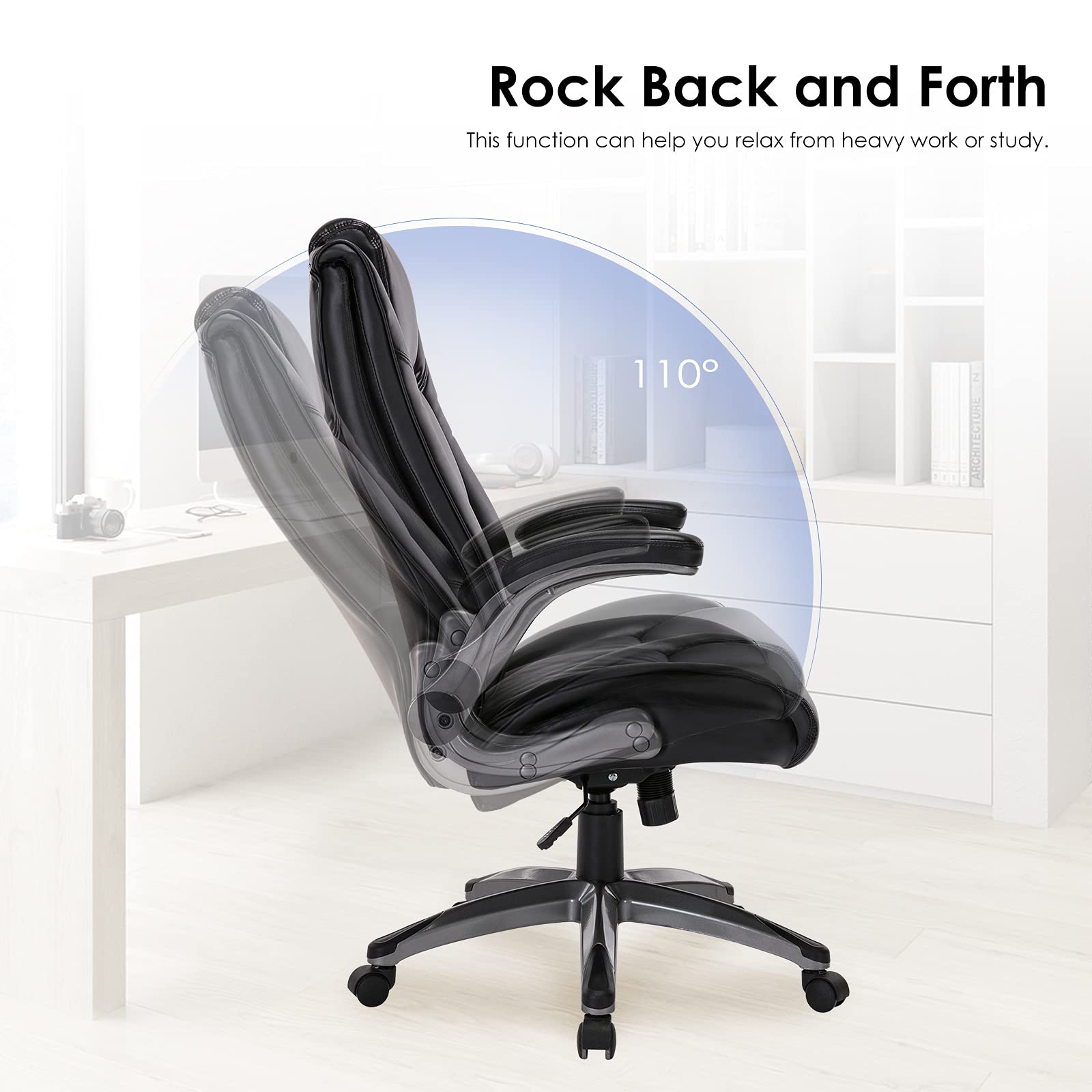 High Back Office Chair PU Leather Executive Swivel Computer Desk Chair Flip-up Arms