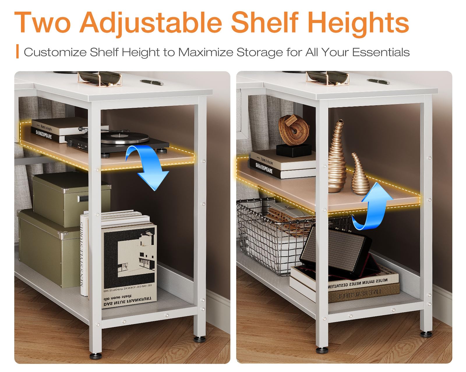 40 Inch L Shaped Desk with 2 Drawers, Computer Desk with USB Ports, Office Desk with Storage Shelves, Corner Desk Home Office Desks, Small Desk for Bedroom, White