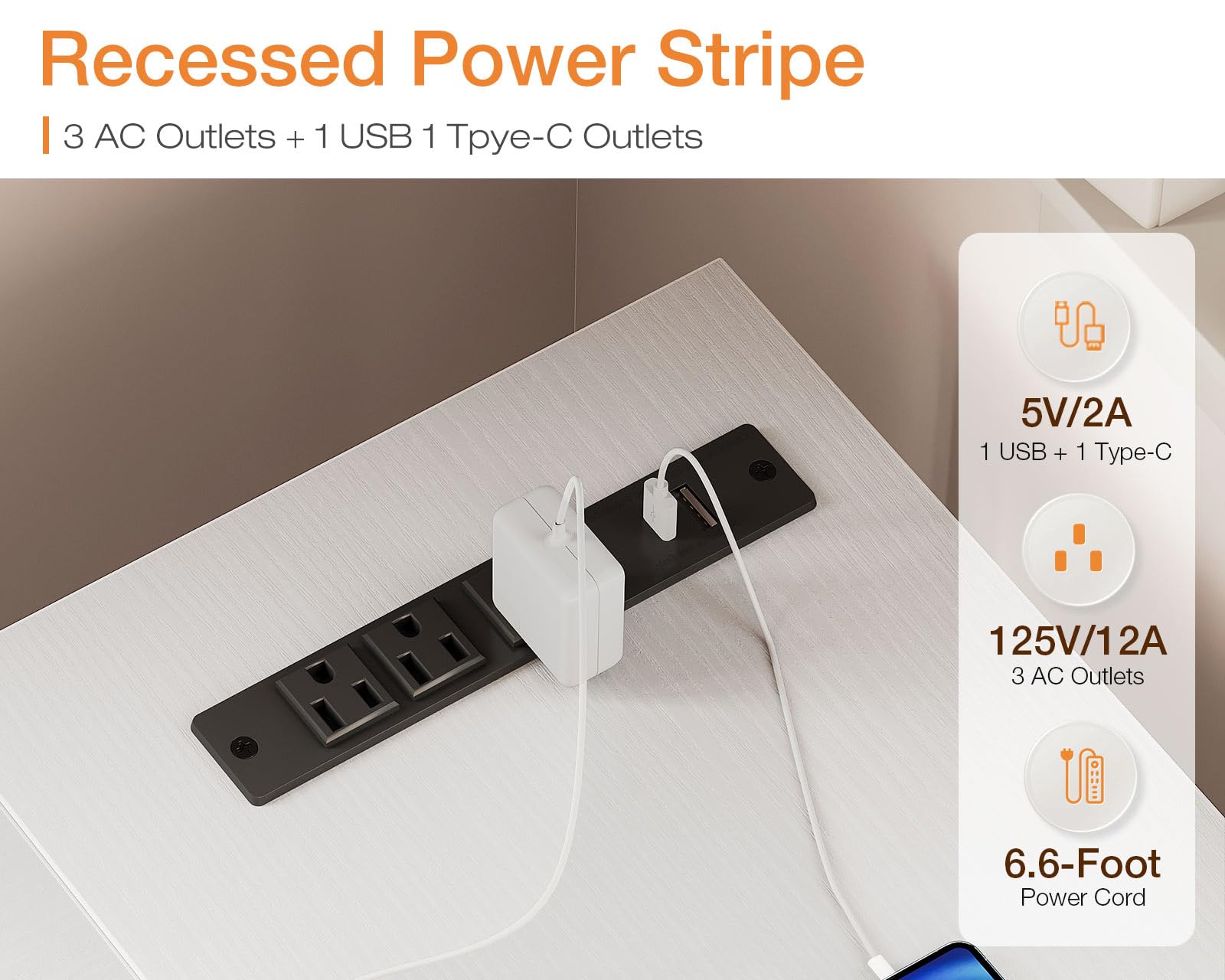 - Coleshome computer desk is equipped with 3 Power outlets & 1 USB charging port & 1 Type-C port for electronic devices, you can easily and conveniently charge your smartphone, gaming gear or Bluetooth devices when you are working or playing games.