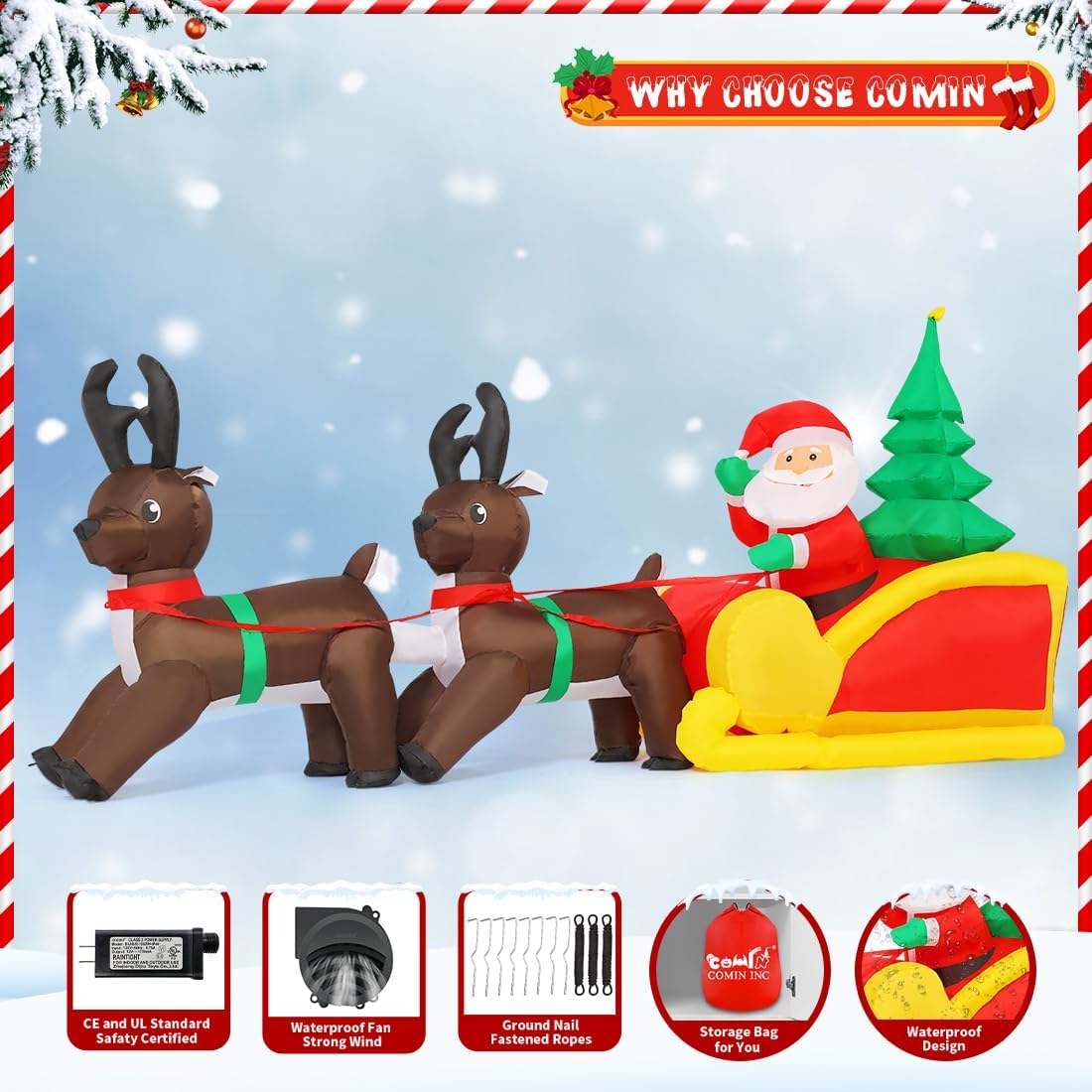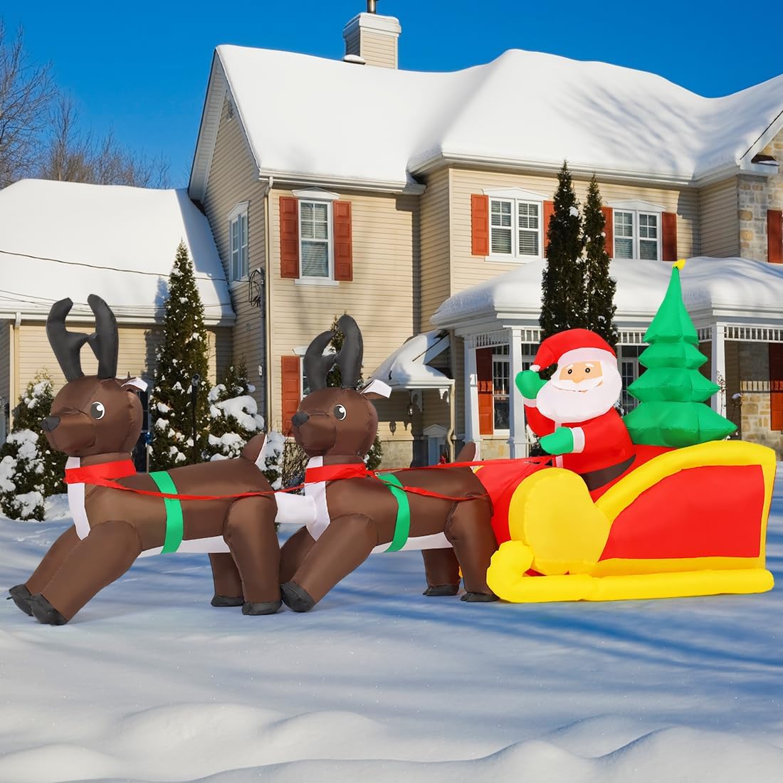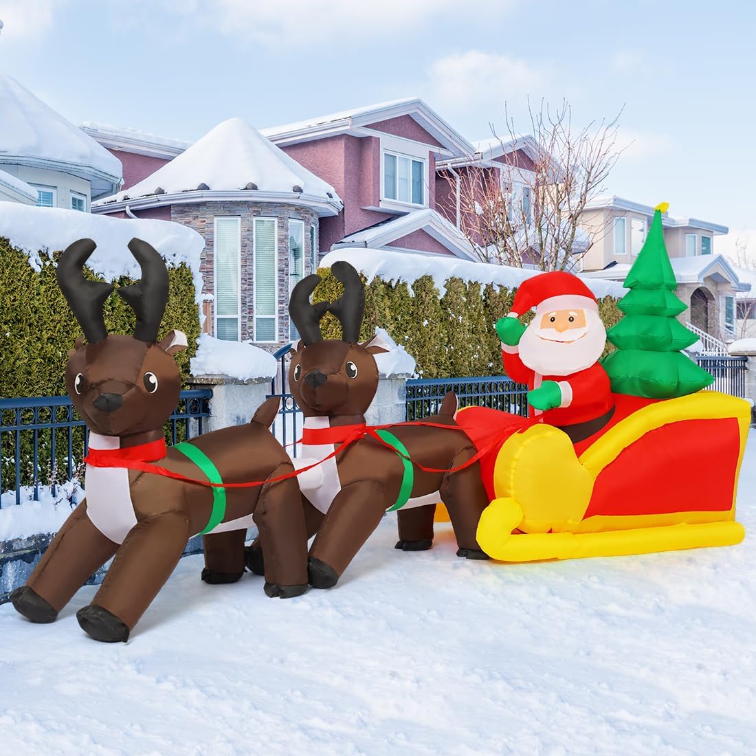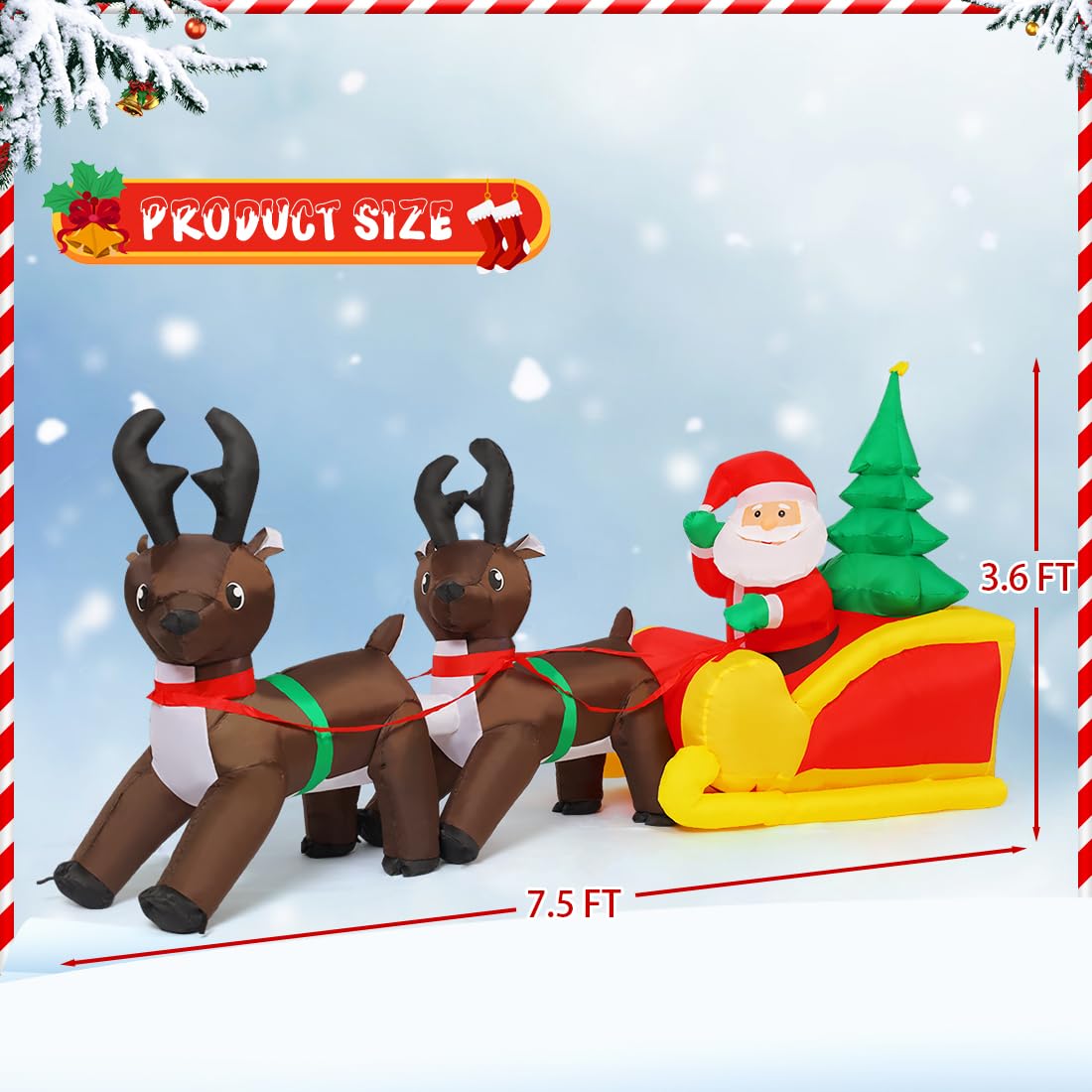 - 7.5FT CHRISTMAS BLOW-UP - Inflatable Outdoor Christmas Decoration with bright built-in LEDs is the ideal Christmas blow-up a decoration for indoors and outdoors, creating a warm and happy Christmas atmosphere for your yard and room