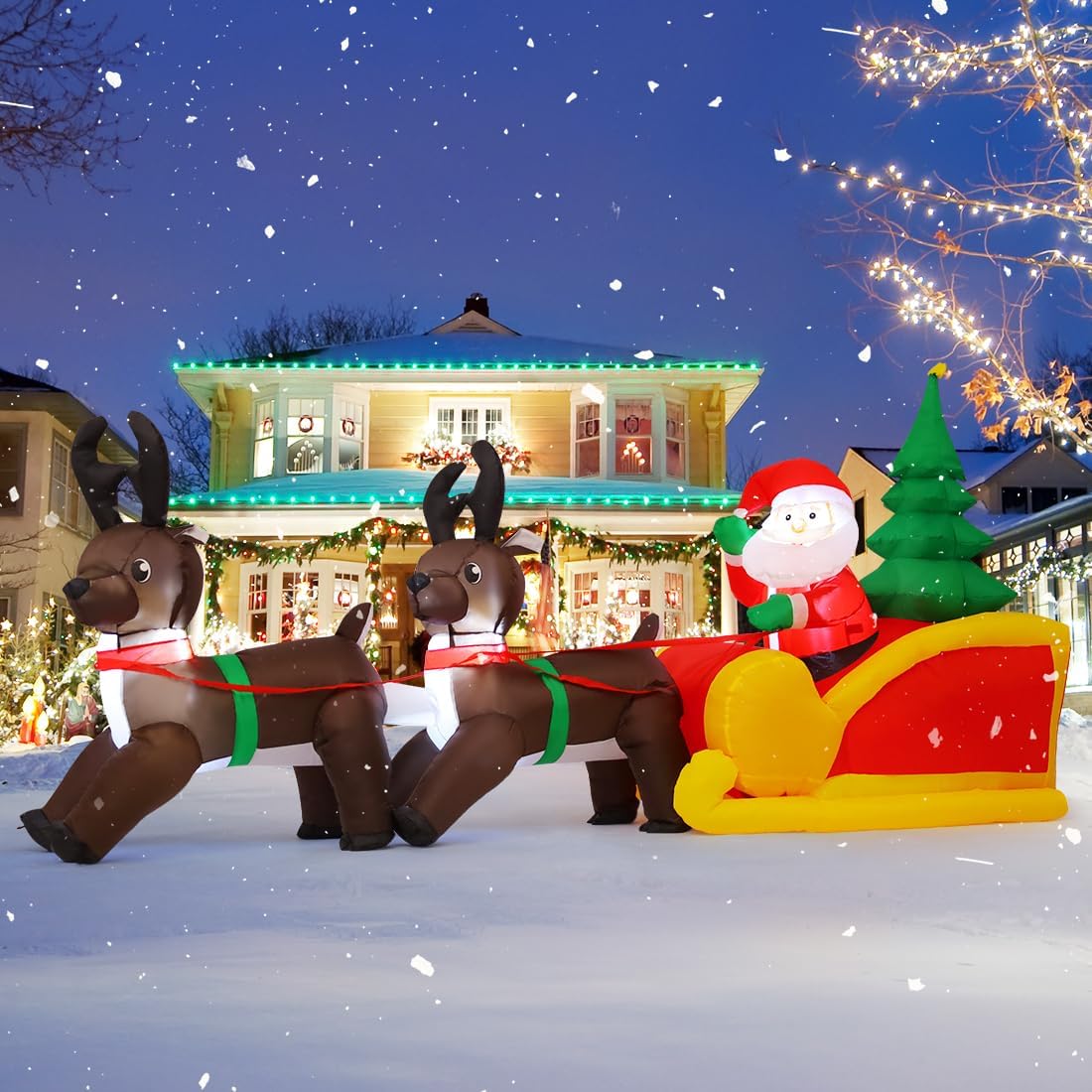 - EAST TO SET UP - Our Christmas blow-ups come with an inflatable features with a waterproof fan, metal ground stakes, a built-in sandbag, fasten rope and a storage bag. The package includes everything needed for easy setup.