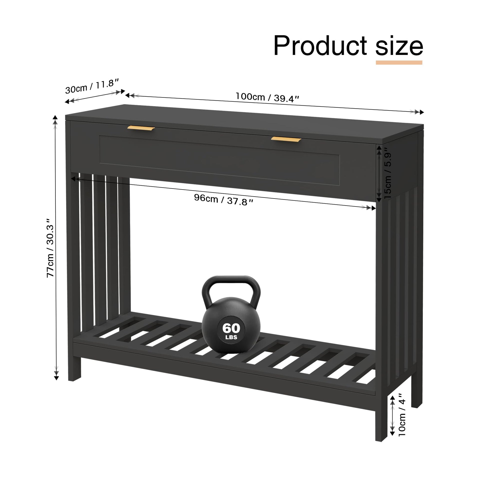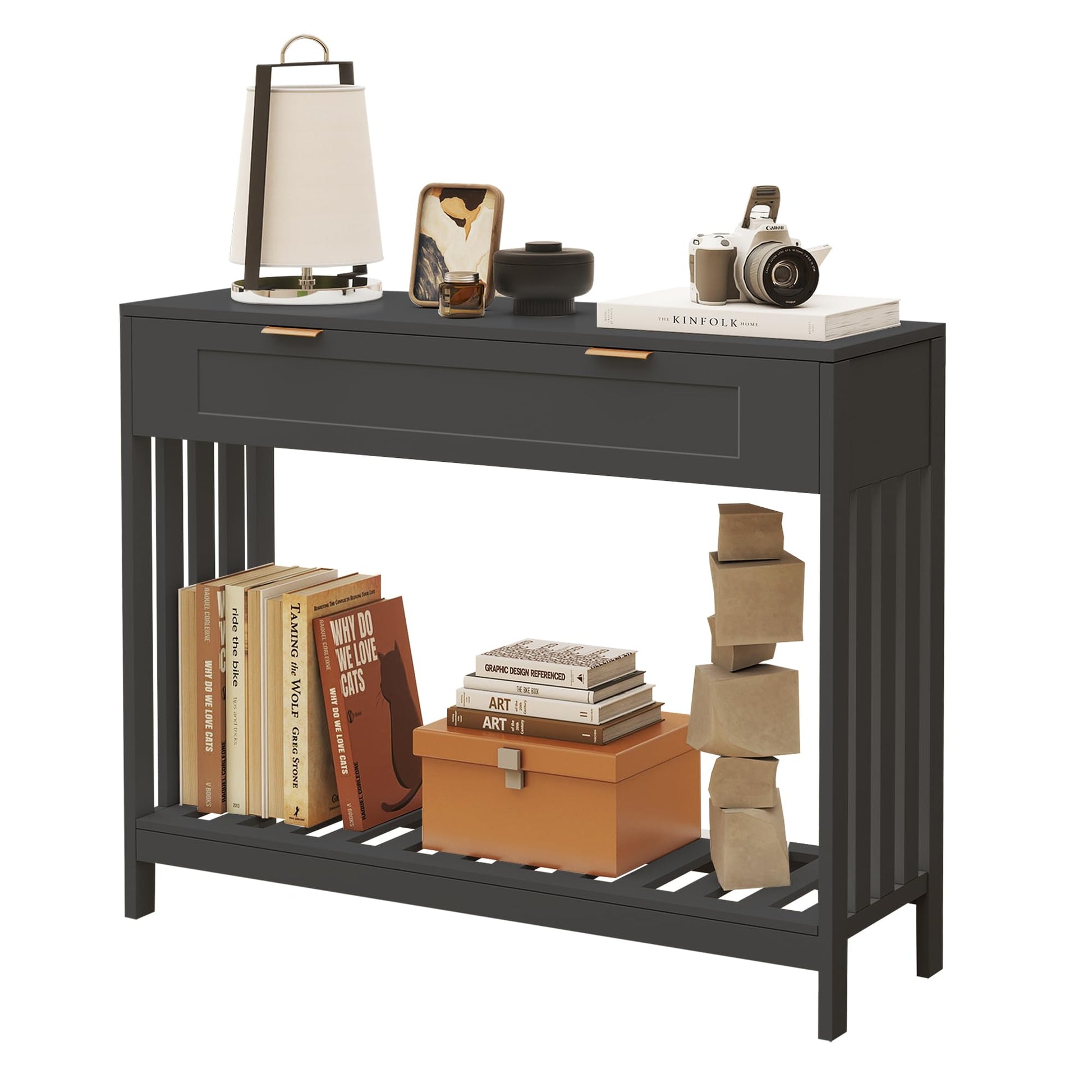 Console Table with Drawers - Narrow Entryway Table with Storage Shelf