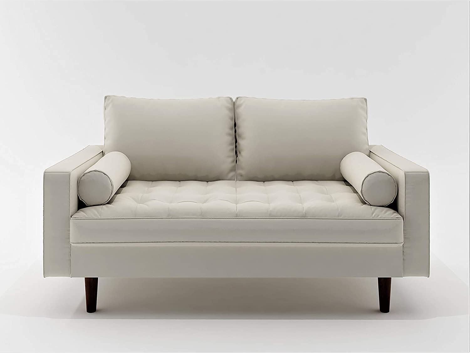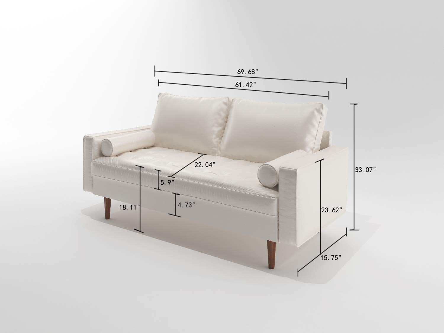 Womble Mid Century Modern Couch with Bolster Pillows, PU Leather Upholstered Tufted