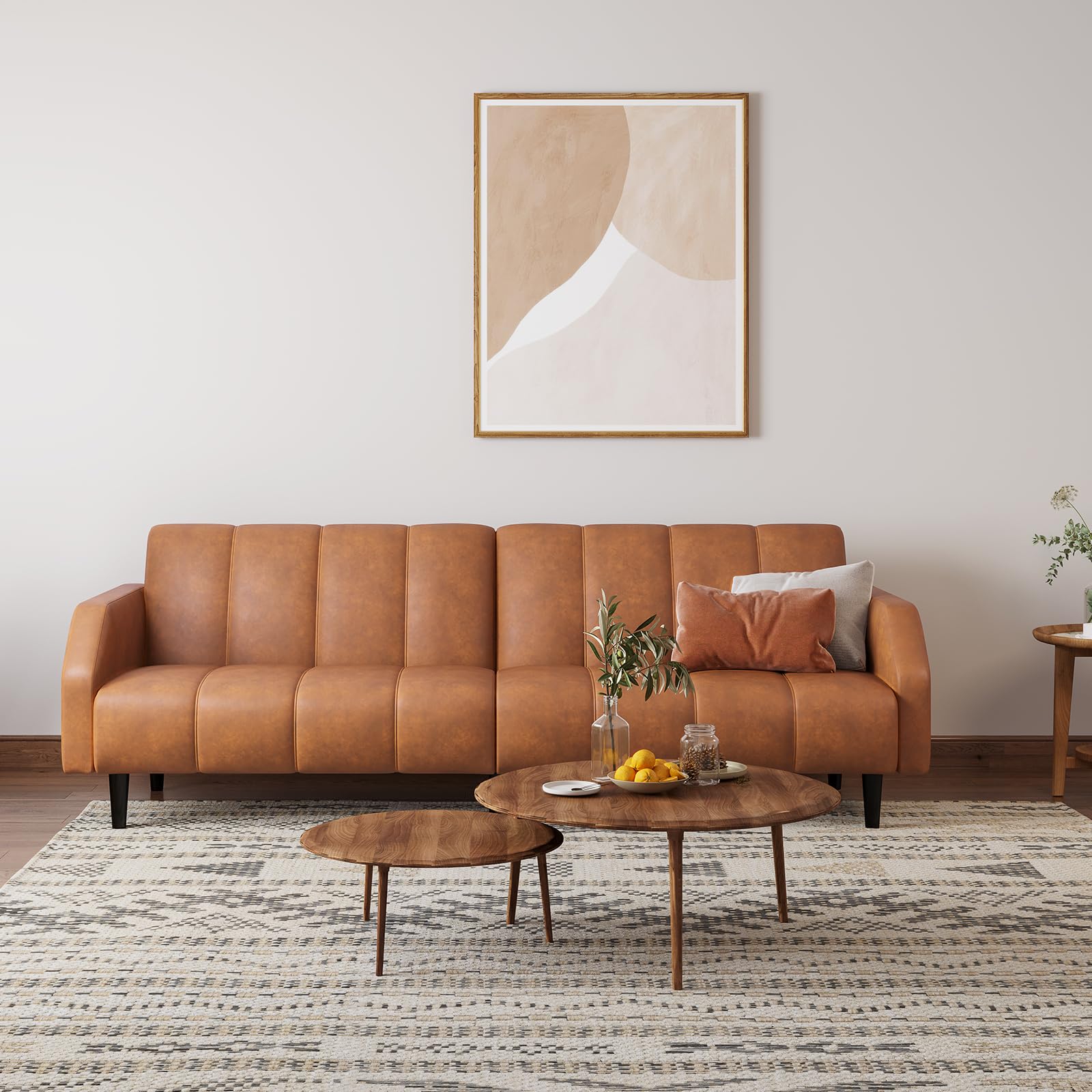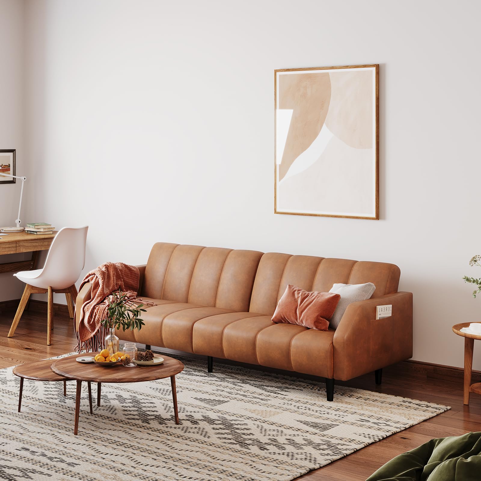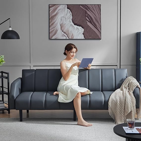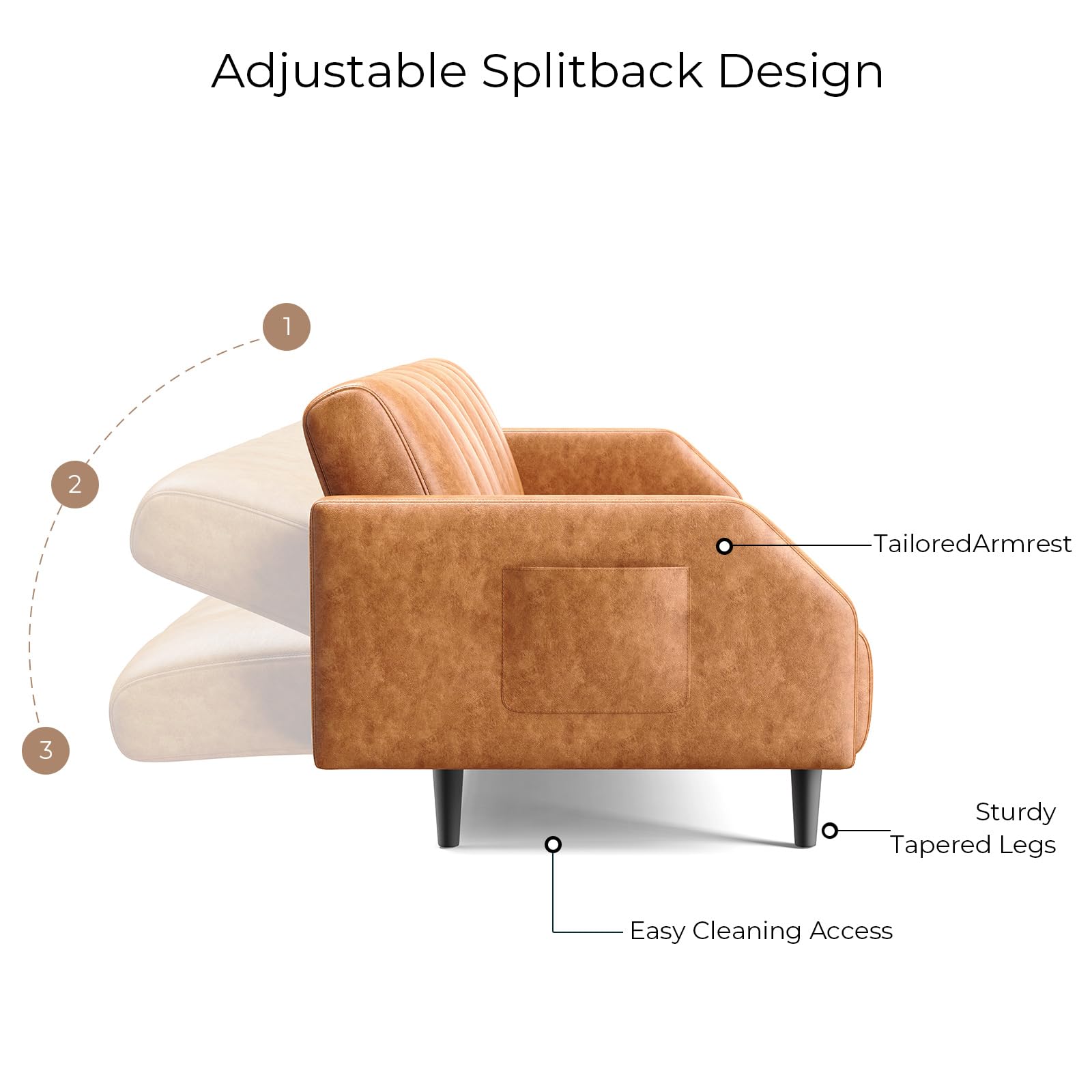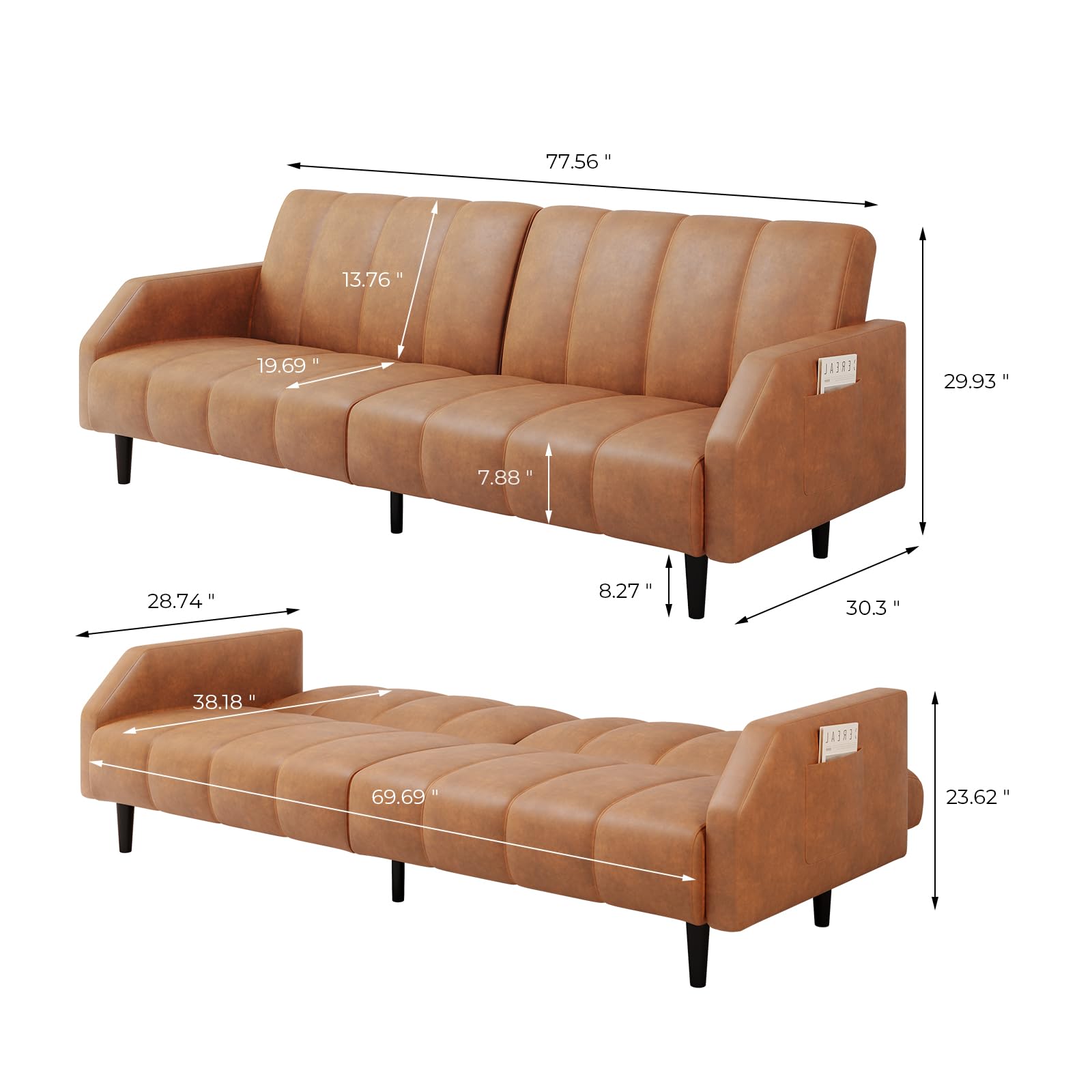 Leather Loveseat Sofa Bed, 78“ Futon Sofa Bed, Adjustable Futon Set Backrest