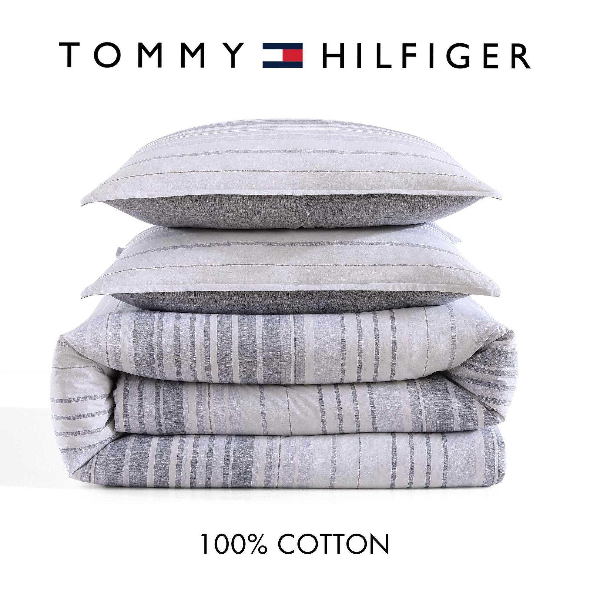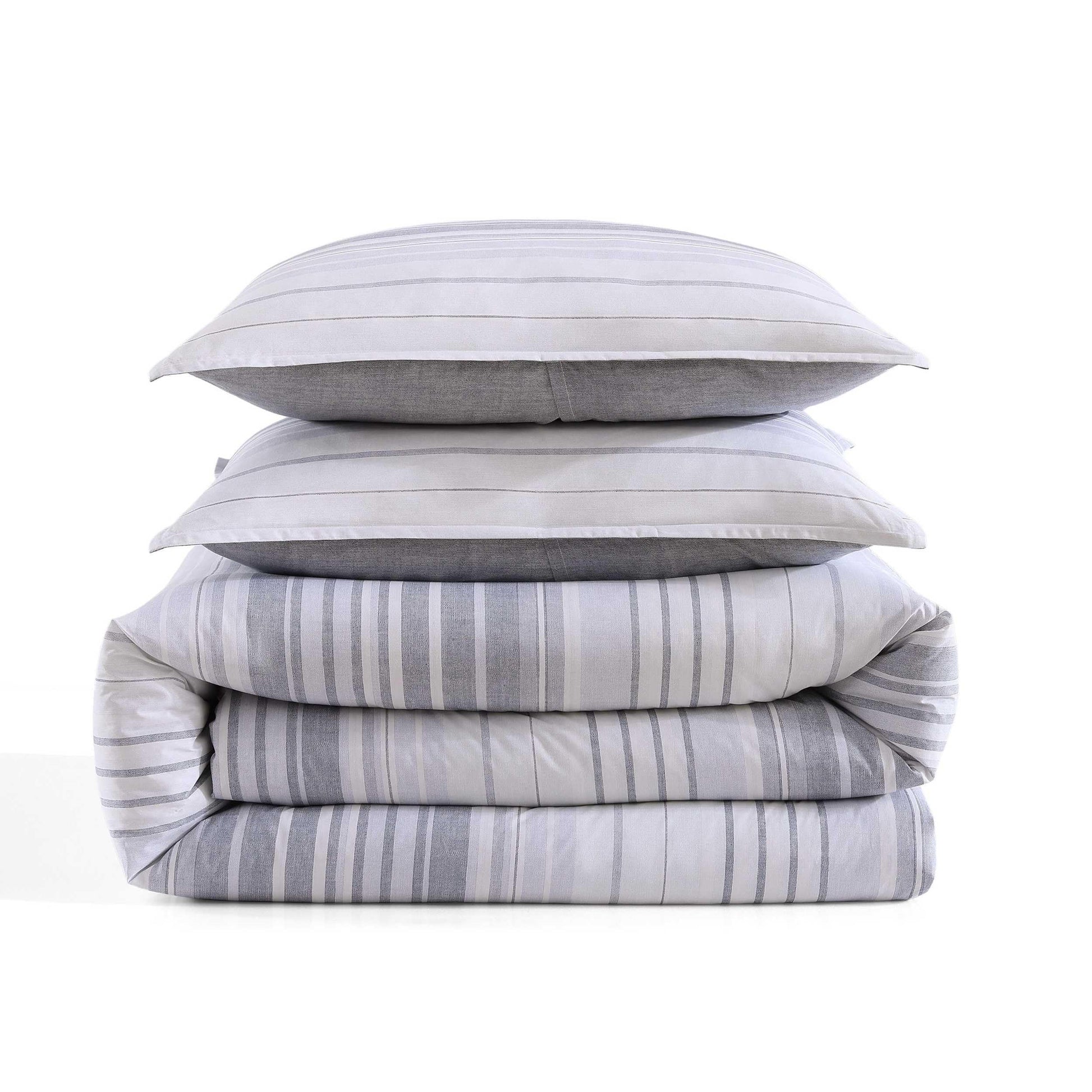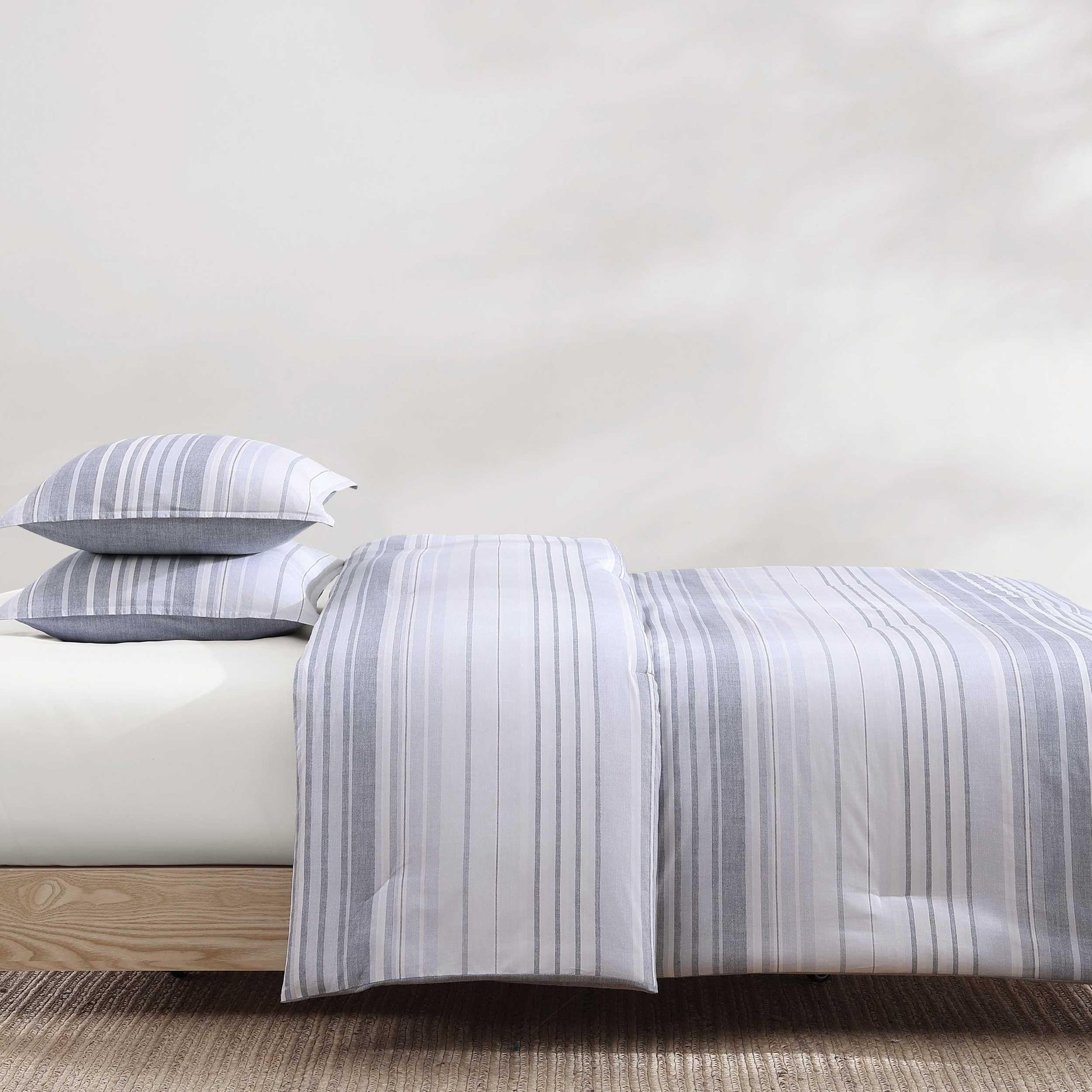 Cotton Textured Comforter Set - Bold Stripe Grey