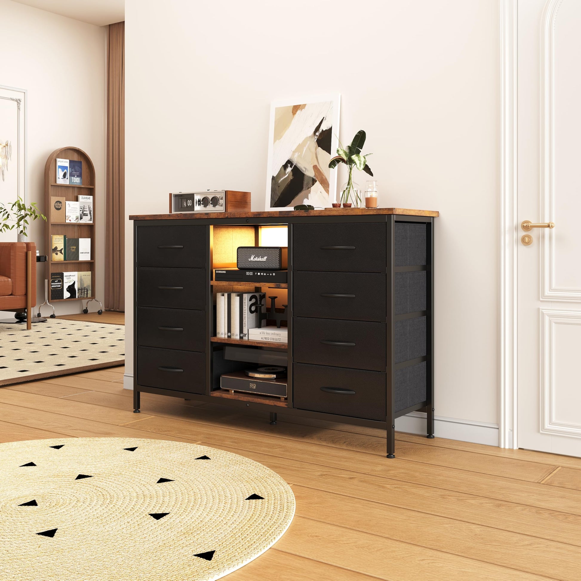 - This pu finish dresser comes with a built-in power outlet and LED light, which is both functional and stylish. Connect Bluetooth and easily control these LED lights through the app. There are over 60,000 DIY colors to choose from, and you can set the perfect lighting atmosphere for any scene. In addition, there are microphone functions, music functions, and timing functions