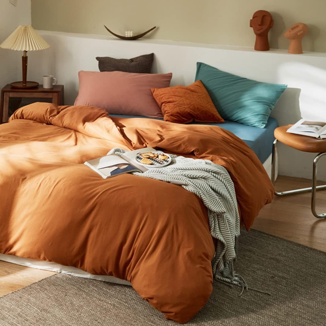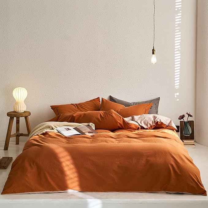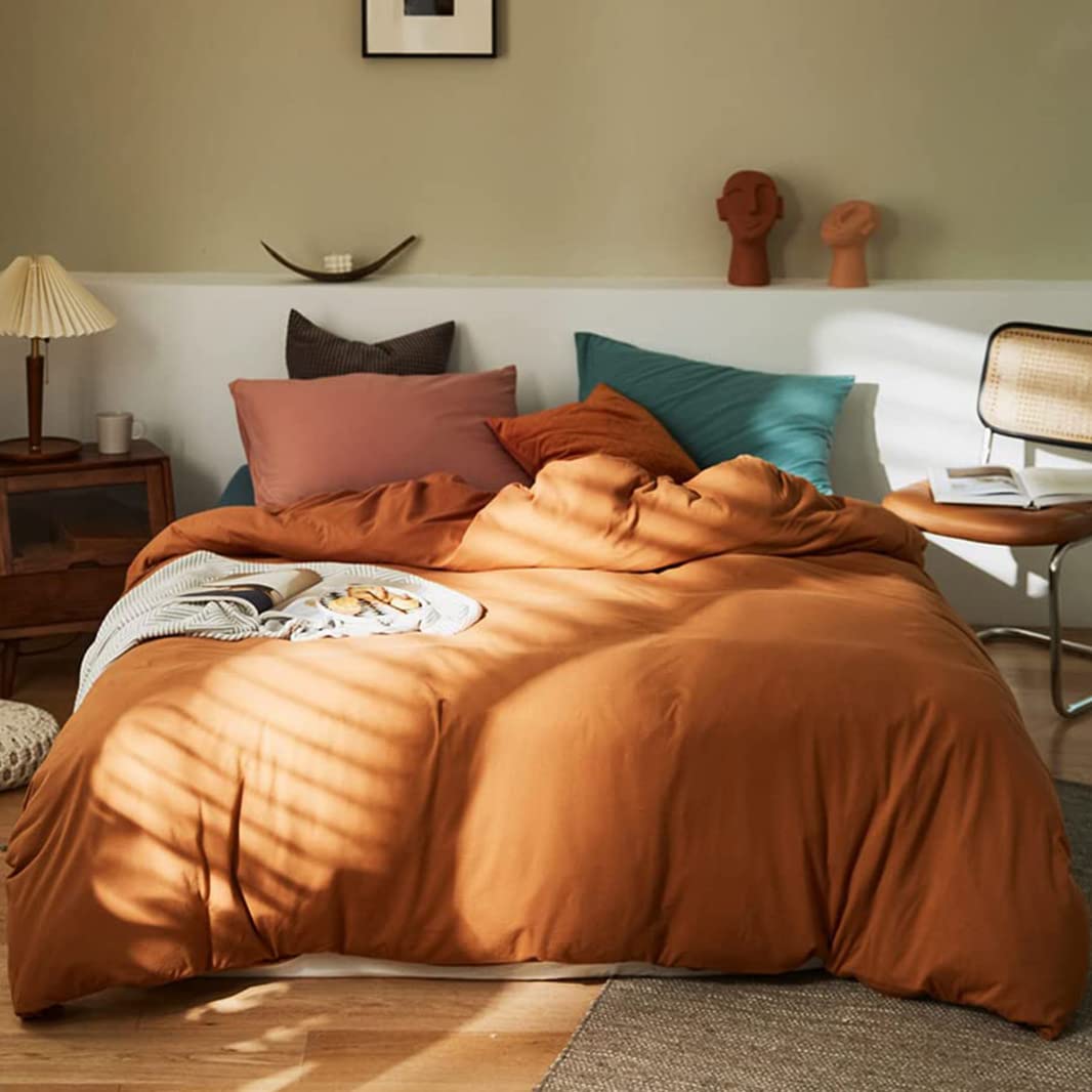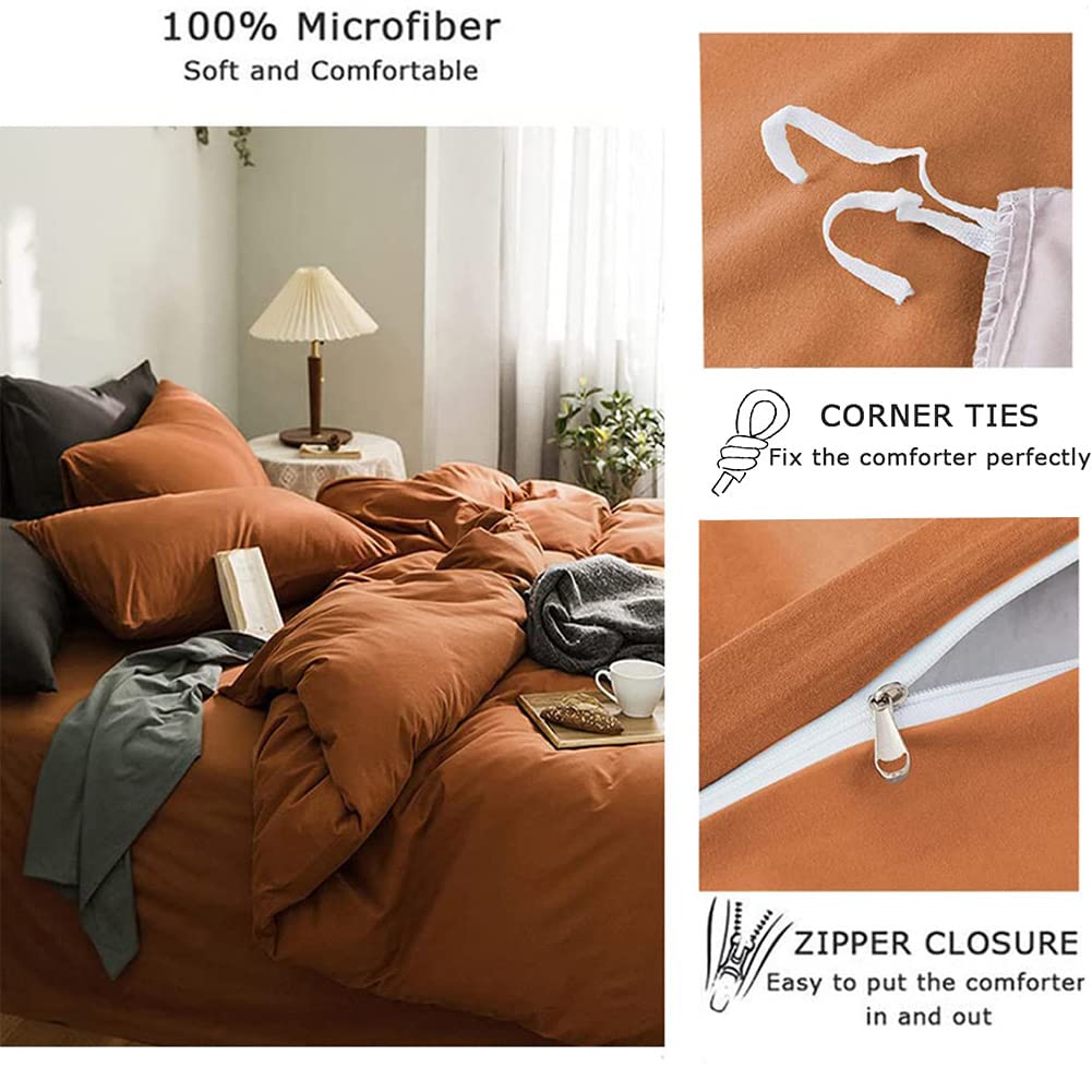 - Premium Microfiber - Our burnt orange duvet cover set is woven from the high quality microfiber material, double brushed on both sides for ultimate softness and comfort. We are sure this breathable, non-fading, wrinkle resistant and environmental friendly duvet cover will let you have a comfortable cozy sleep all night and wake up refreshed every morning.