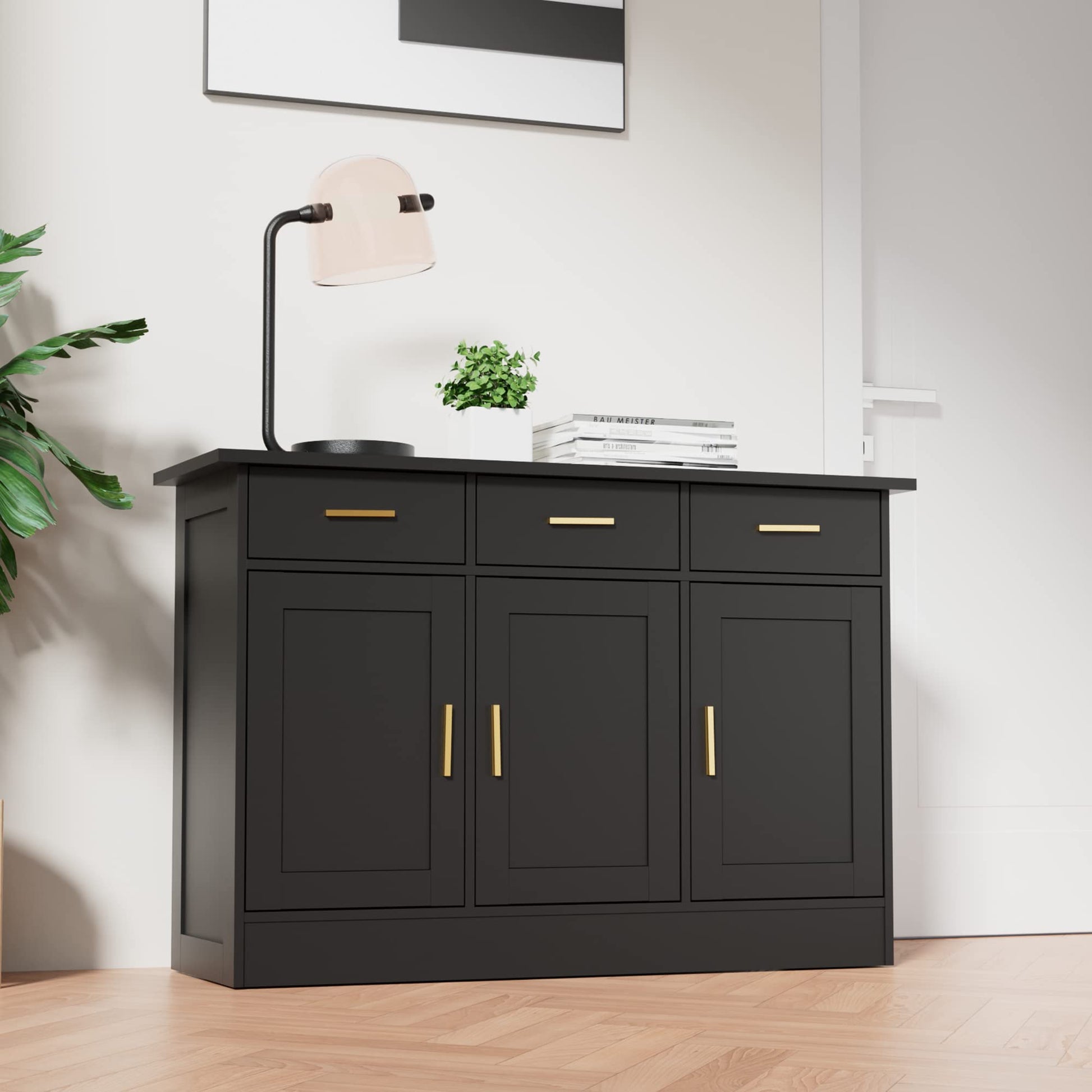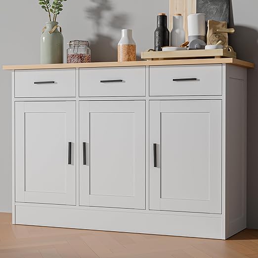 - This Buffet Cabinet combination of warm oak wood grain tones and pure white is ideal for creating your own cozy nest. This kitchen buffet cabinet can meet both aesthetic and functional needs. It can be placed not only in the entryway, but also in the kitchen, bedroom, and office.