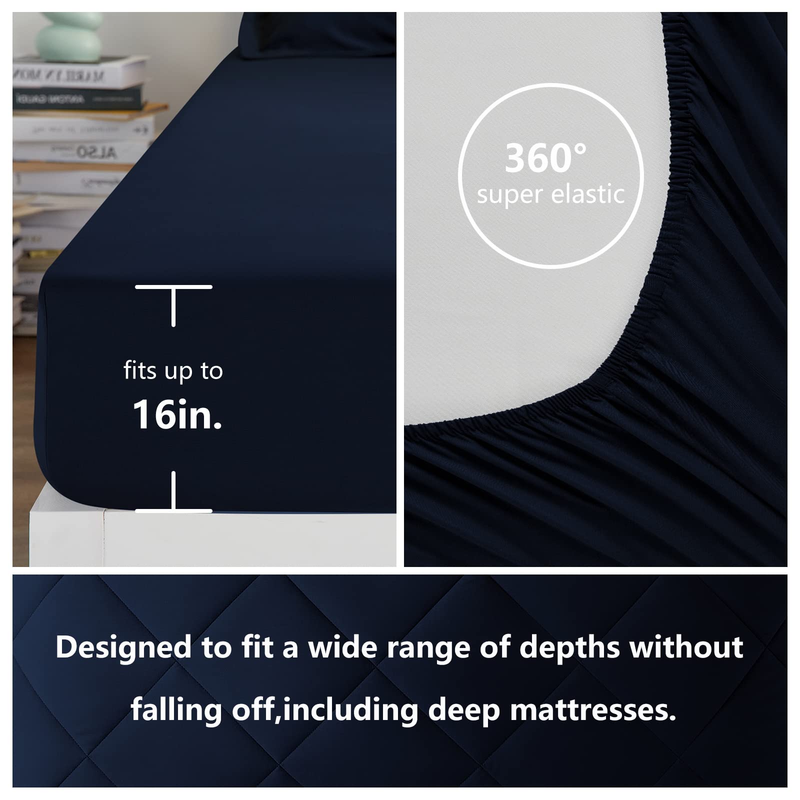 - Elaborate Design: The elastic deep pocket fitted sheet fits mattress max up to 16" deep. That can always keep non-slip no matter how you twist and turn in your bed. The comforter features durable box stitching which offers sophisticated look alongside simplicity and will also stable inside filling. Solid grey tones add a touch of color to this elegantly simplified look