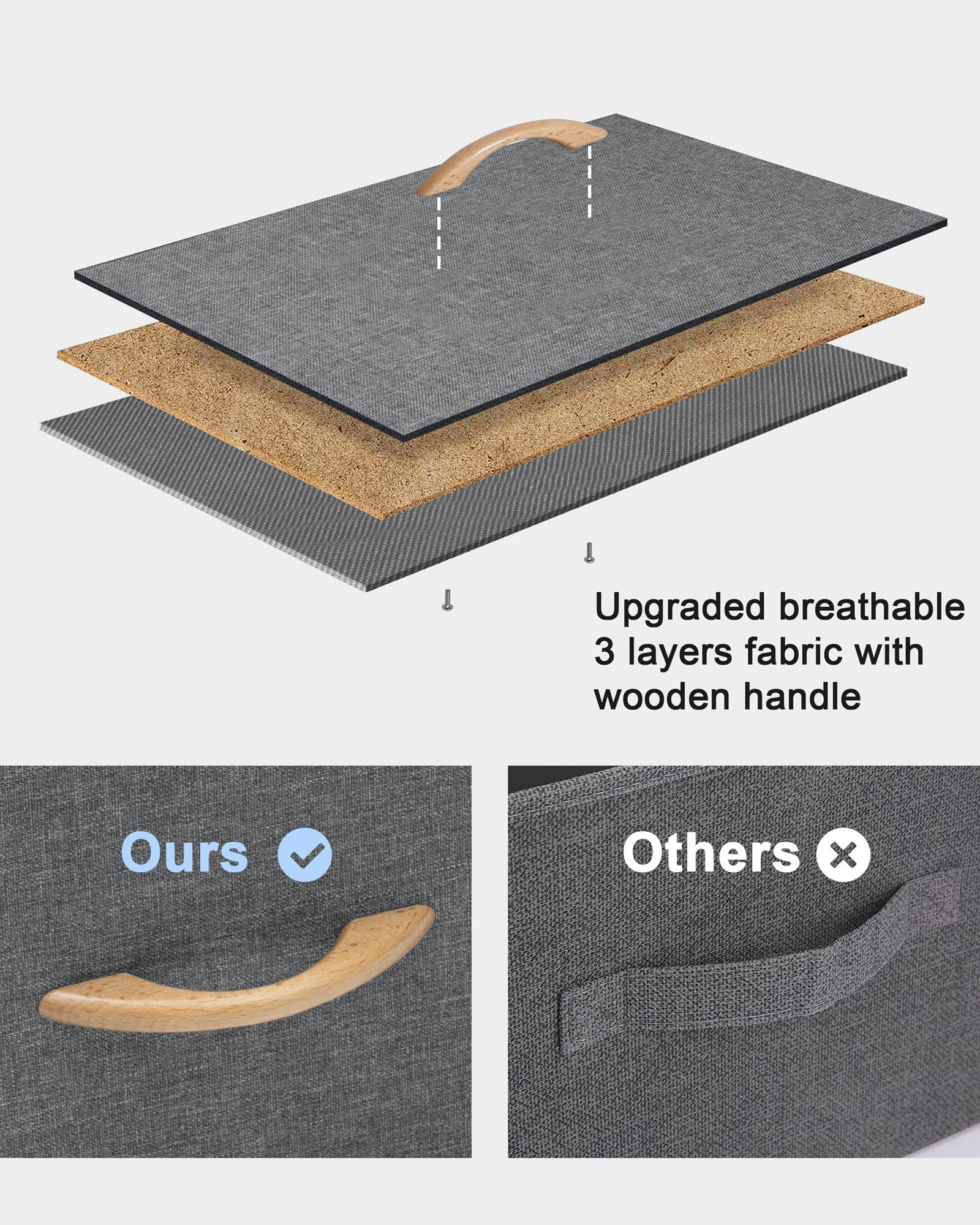 - QUALITY CONSTRUCTION Made of breathable high-quality fabric; Strong steel frame and durable MDF wood top; Wood Handles; Plastic feet protect floors; Hardware is included for hassle-free installation; Easy Care - wipe clean with a damp cloth and allow to air dry.