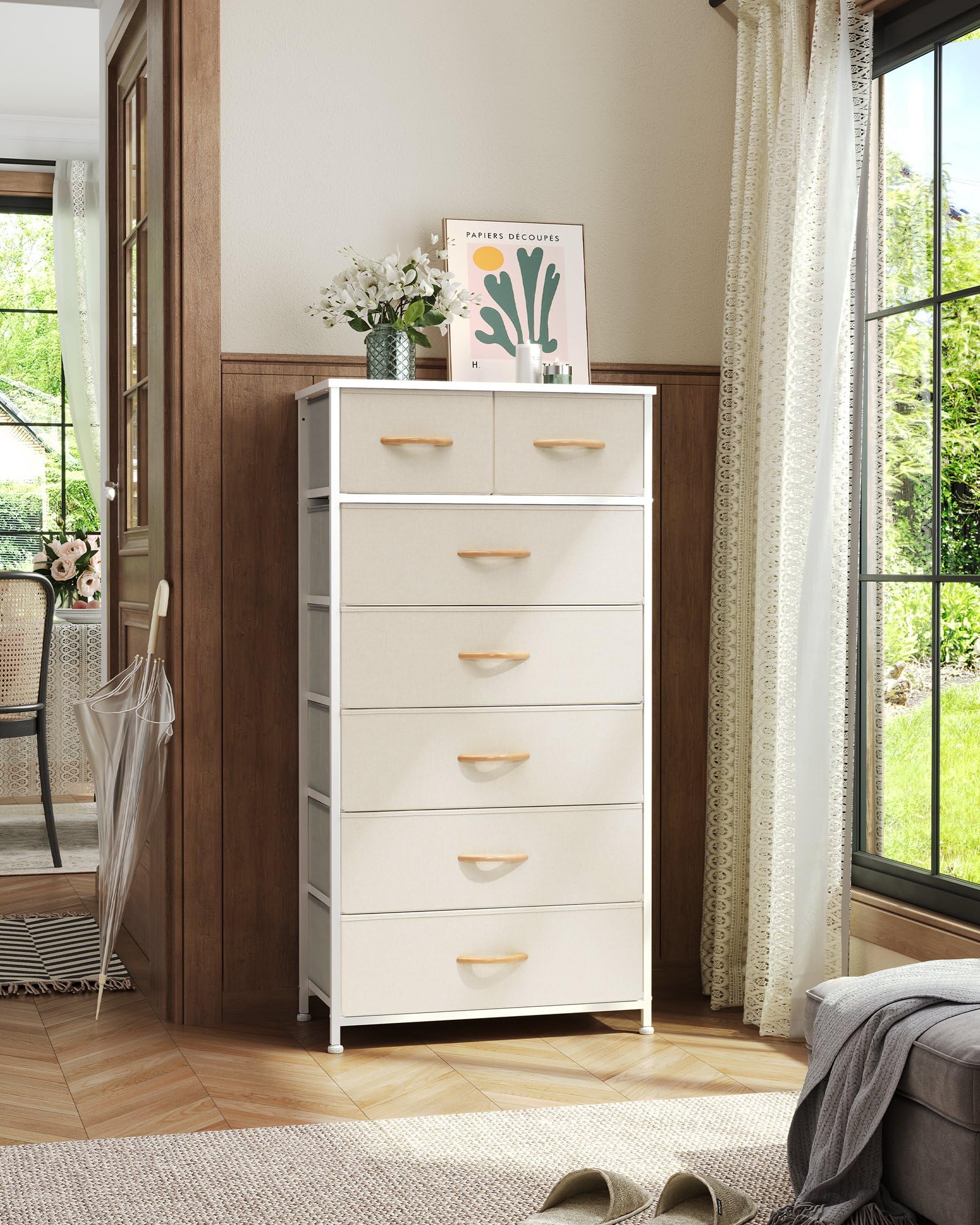 Products Vertical Dresser Storage Tower - Sturdy Steel Frame, Wood Top, Easy Pull Fabric