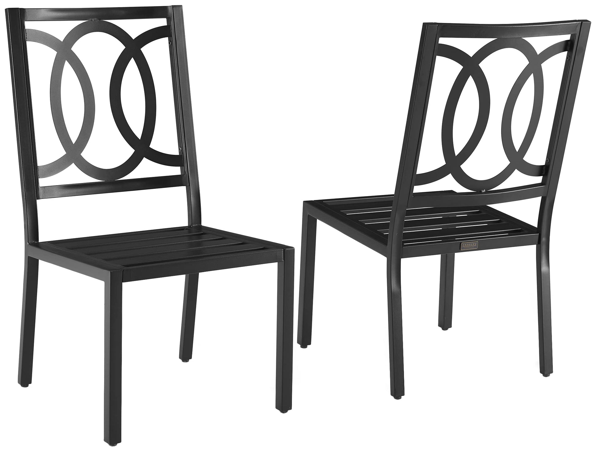 - ALL-WEATHER OUTDOOR FURNITURE: These patio dining chairs deliver traditional elegance and durability. Their matte black powder-coated finish enhances the chair back's interlocking oval design, adding a touch of sophistication to your patio or balcony.