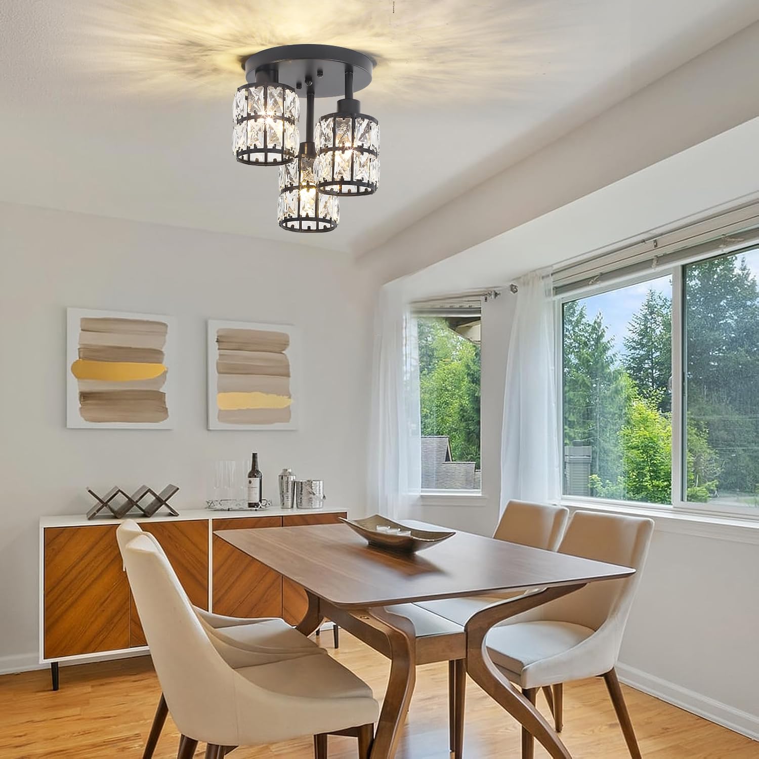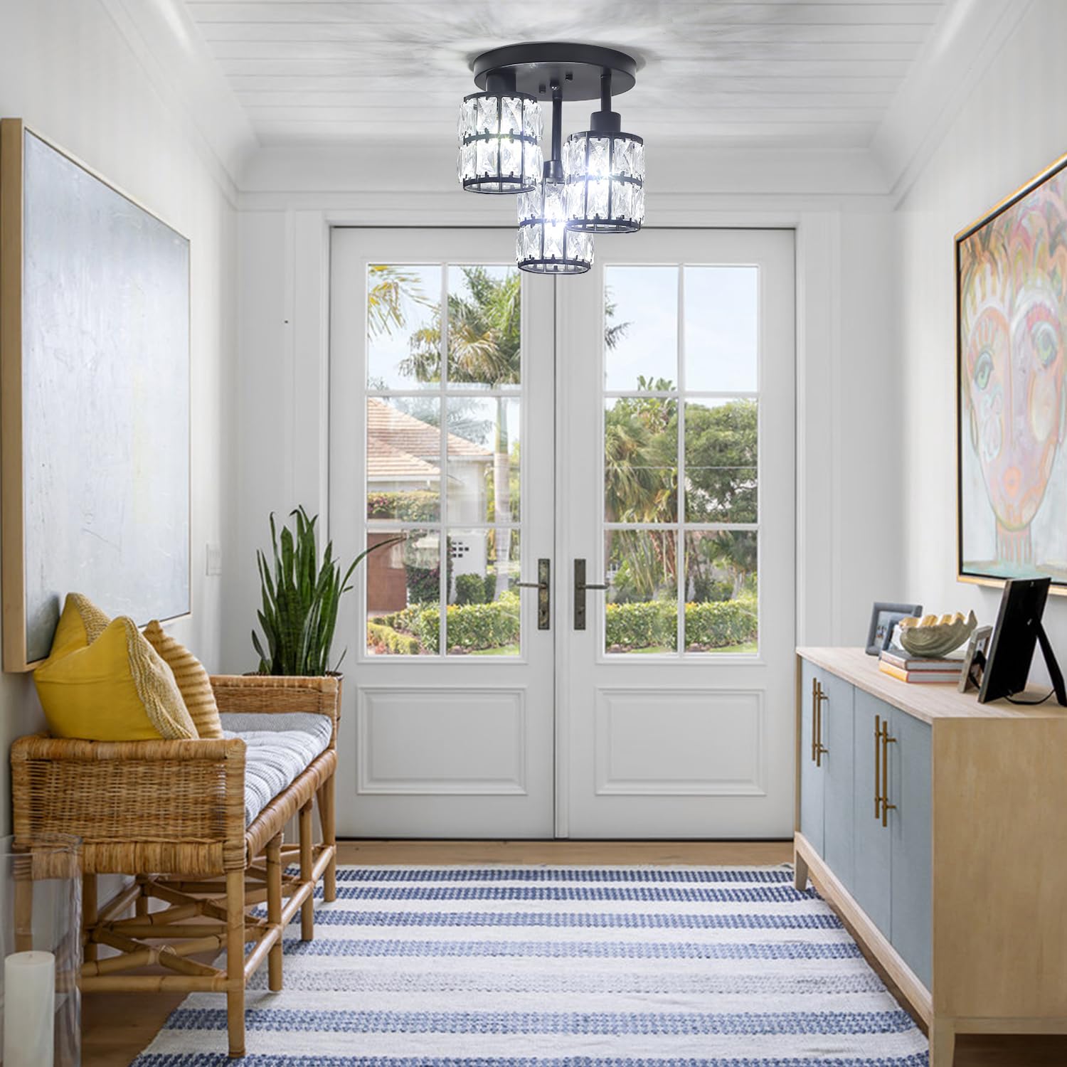- Unique Crystal Design: The 3-light crystal semi flush mount ceiling light use high quality crystal material and sturdy black metal frame. Unique open design has high light transmittance and makes the light is distributed evenly. Modern hallway light fixtures with clear crystal lampshade creats a woderful and elegant vibe that will be a focal point in your room space.