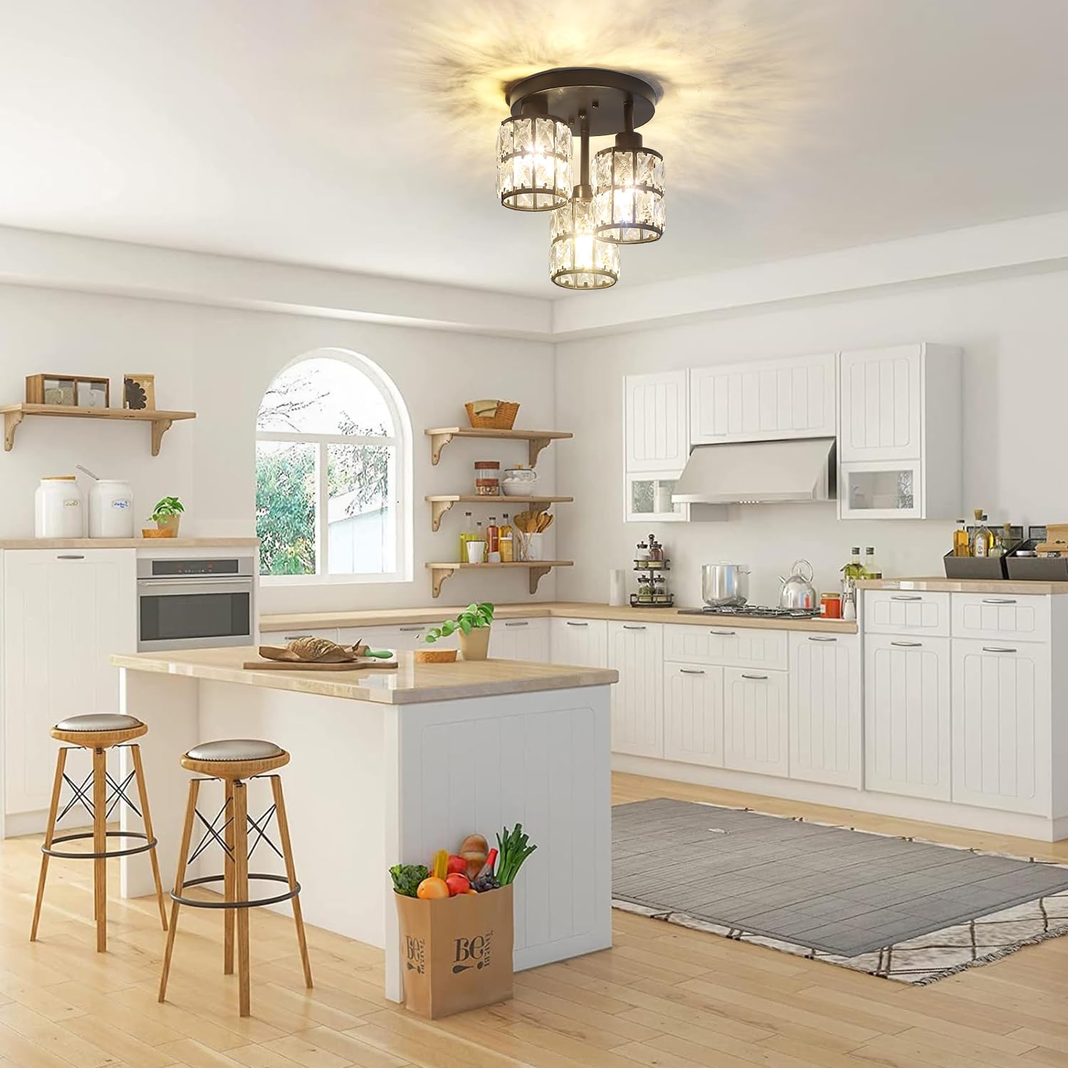 - Kitchen Lighting Fixtures Ceiling: The crystal flush mount ceiling light with simple and modern artistic design, perfect for modern traditional or other various small room styles. Suitable for dining room,kitchen island,hallway, entryway, bedroom, living room,office, farmhouse and foyer.