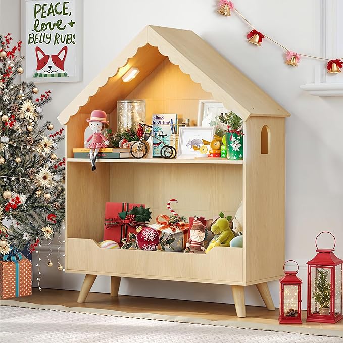 - Cute Style: The bookcase in the shape of the dollhouse is bright style, full of Children's naiveness and fun, encourage the kids to reading and organizing, Comes in neutral color to match the decor scheme of any room