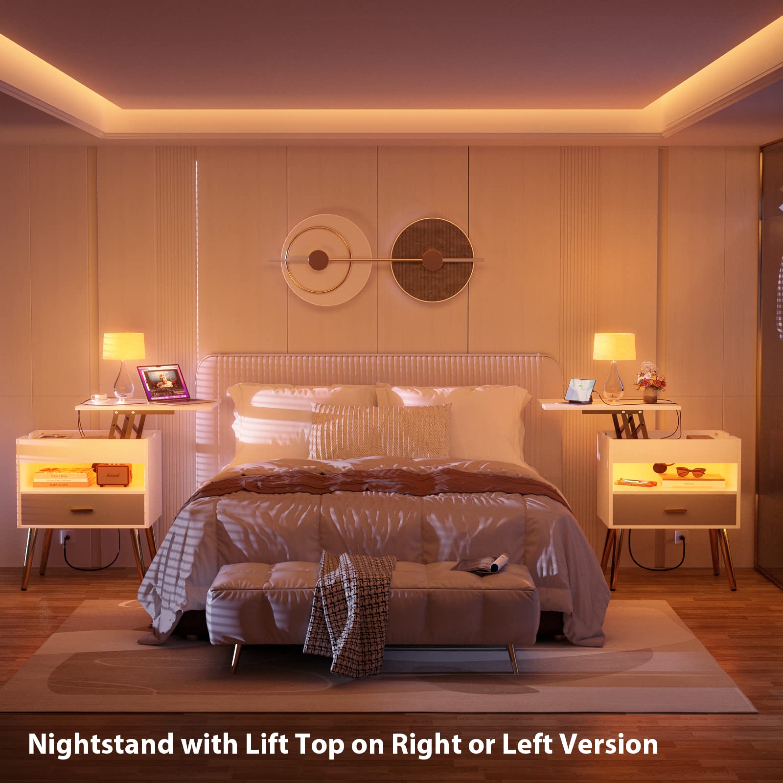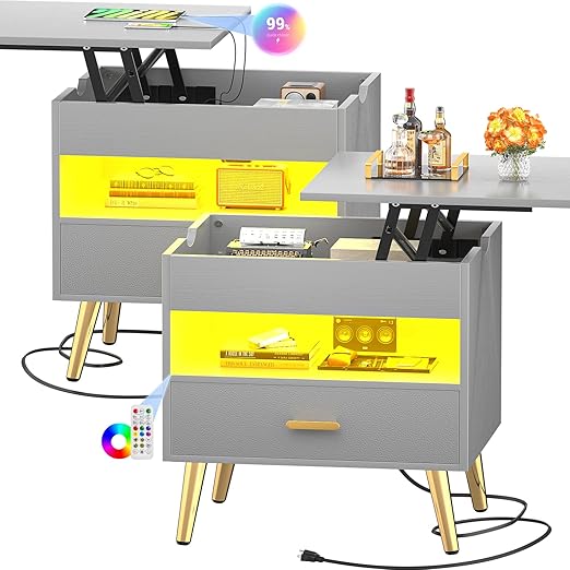 - Cyclysio nightstand has a flexible lifting function with a reversible lift top, you can lift the top on the Left or Right side. The lift top is good and stable and doesn’t slam close. And the lifting top can be used to work, and entertainment, such as playing chess, video games, drinking, etc. when it comes down, it can be used as an invisible ample storage space.