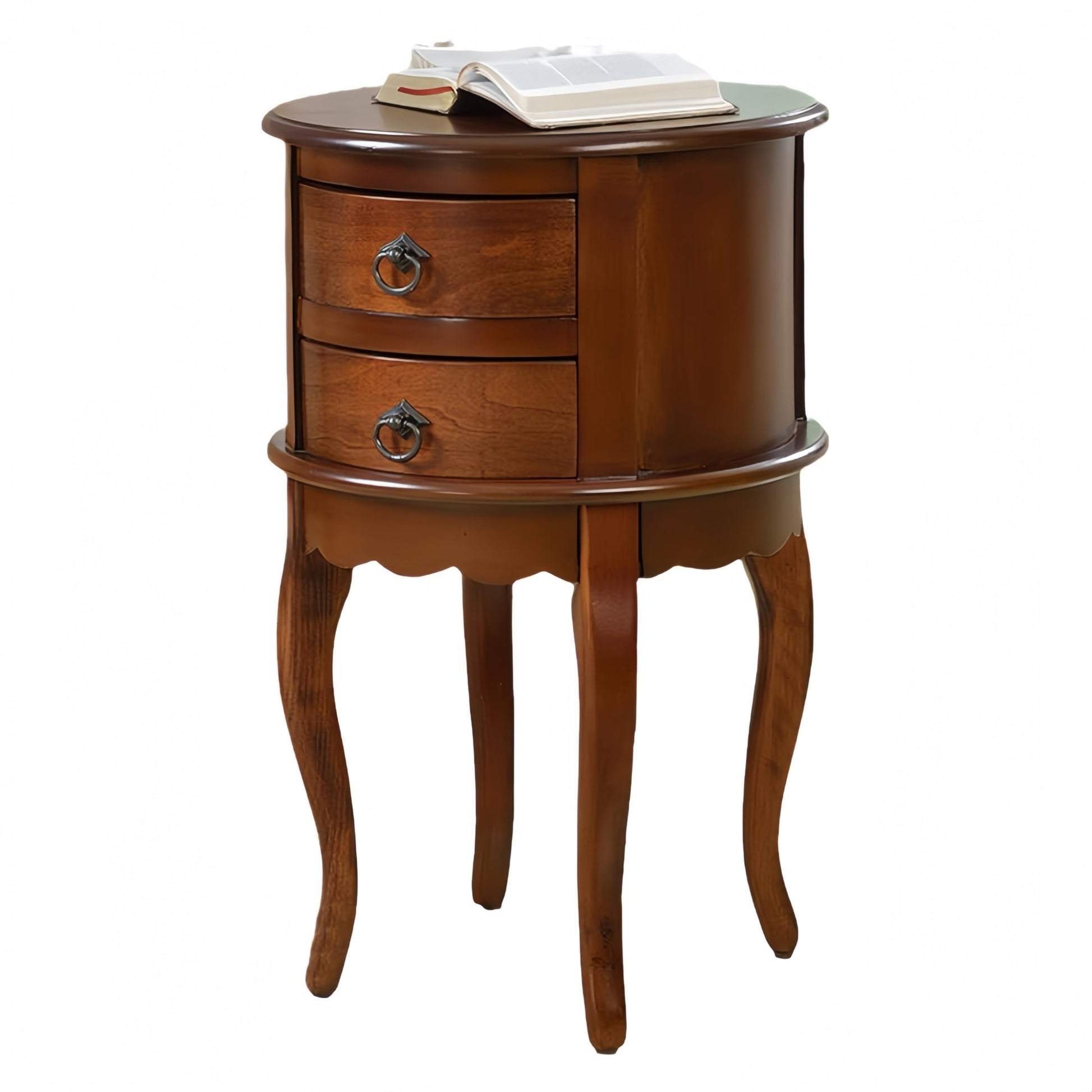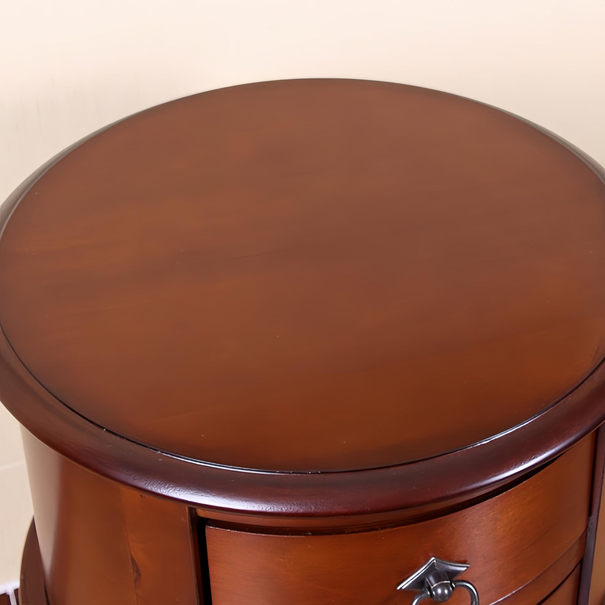 Solid Wood End Table with Drawer, Round Side Storage Table Nightstand, Living Room