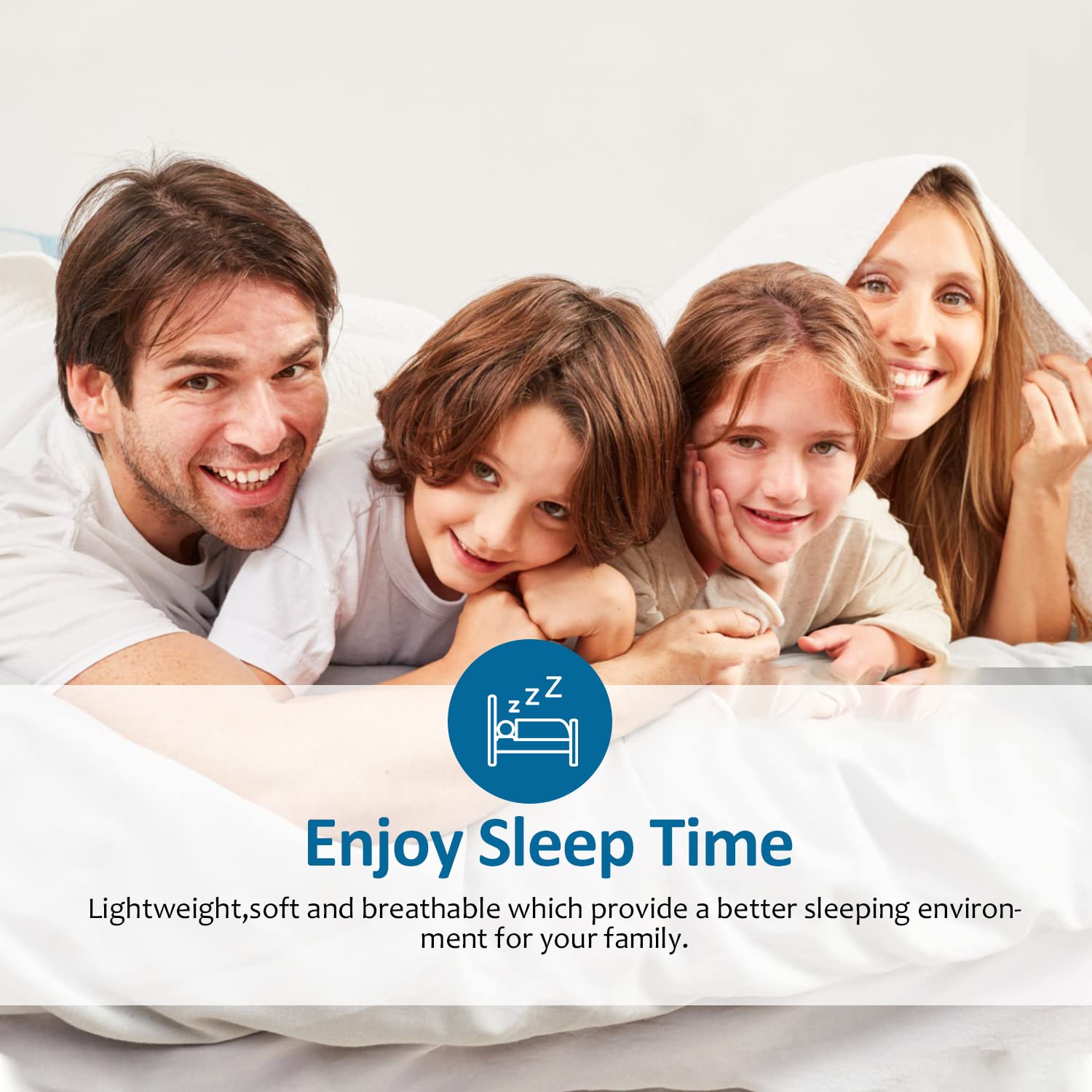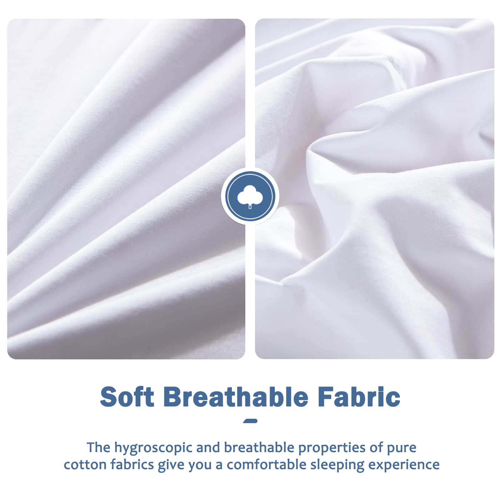 - SLEEP BETTER:425 thread count polyester-cotton blend. More durable than cotton fabrics, even if you rub the blanket repeatedly, the surface of the blanket will not deform and will not become wrinkled. soft down blanket cool and soft touch feeling improves your sleep quality and lets you enjoy a NOISELESS night.