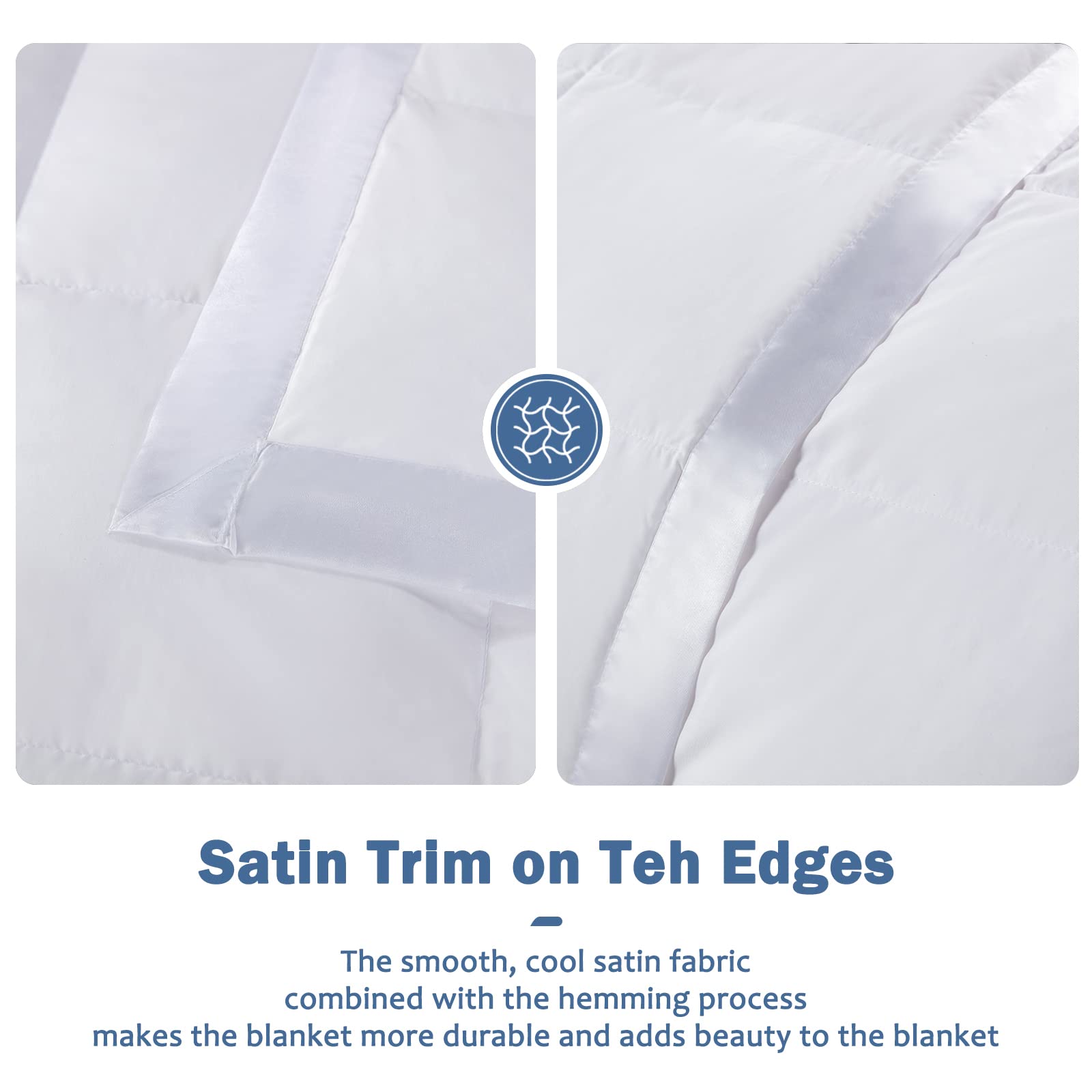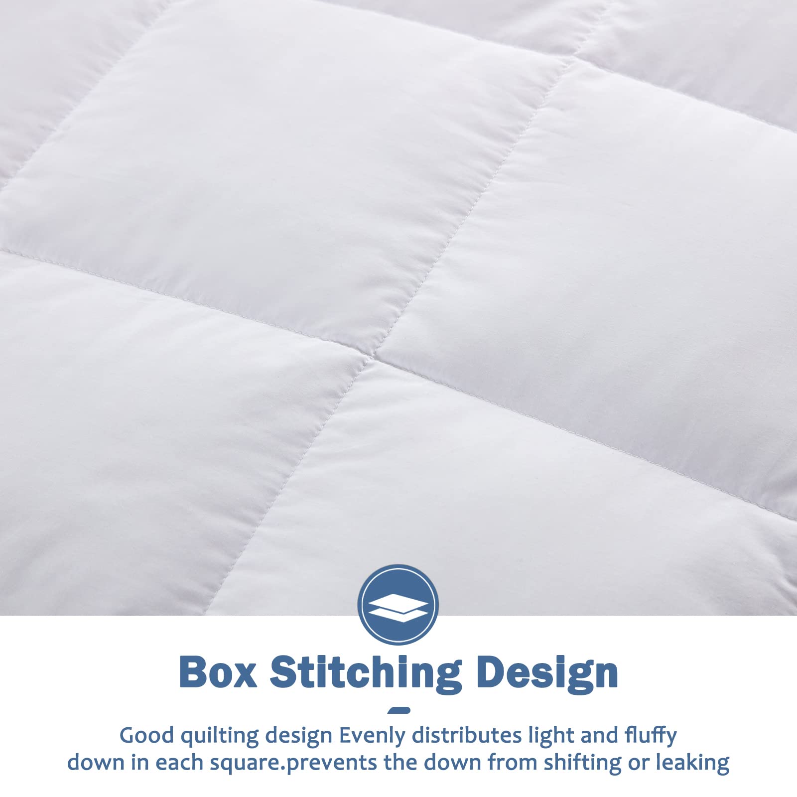 - EXQUISITE UNIQUE DESIGN: The special design of the box stitch keeps the fillings in place, keeps this thin down blanket without any clumping or cool spots, and works hard for years to come...Delicate satin edging details give the light-down blanket a soft, smooth texture.