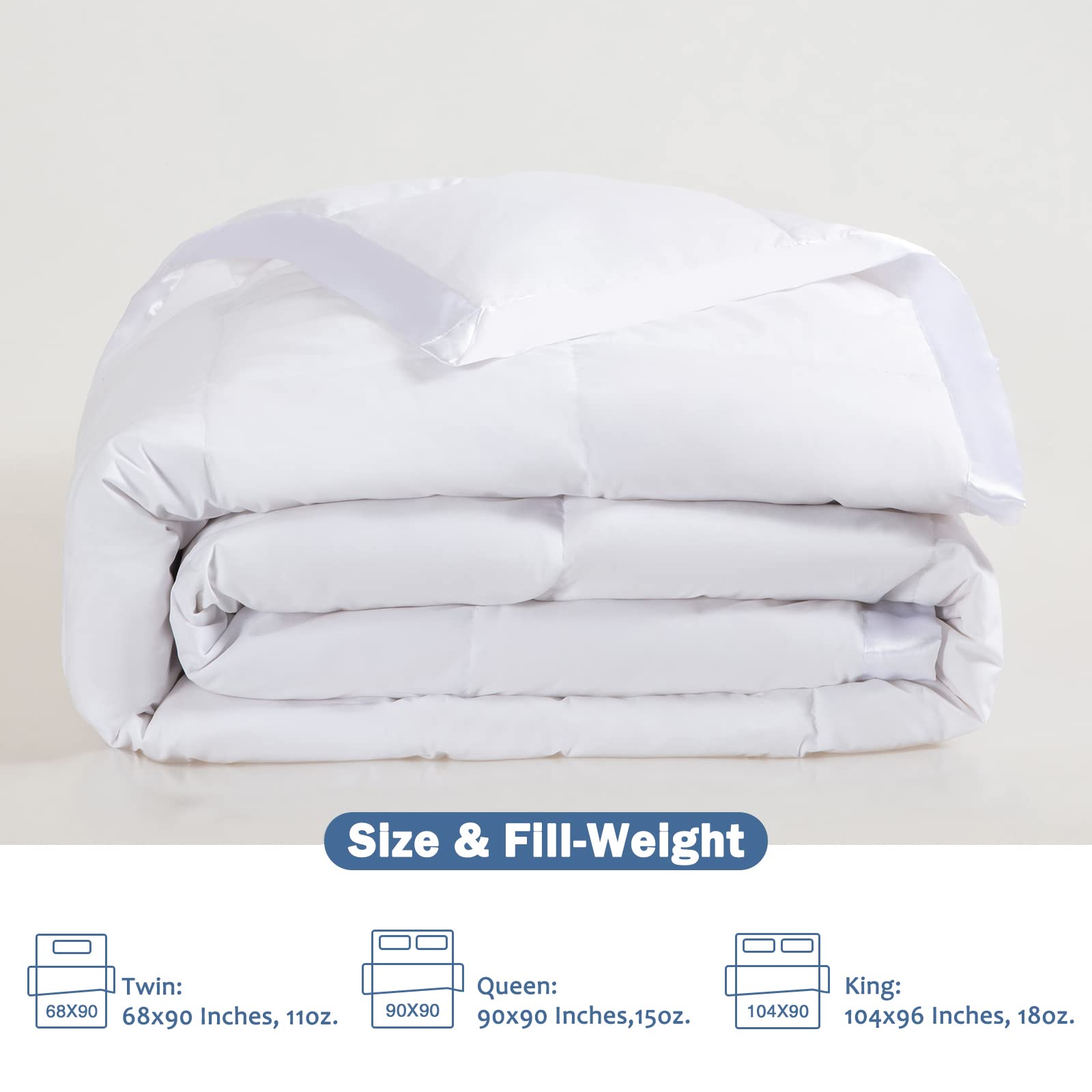 - WASHING INSTRUCTIONS: You will enjoy a down blanket Queen size which is 90x90 inches.After receiving the down blanket,we recommend give the blanket in the dryer to make it quickly return to the original fluffy shape for healthier. Please machine wash gently in cold water, then sundry or tumble dry on low heat for optimum performance
