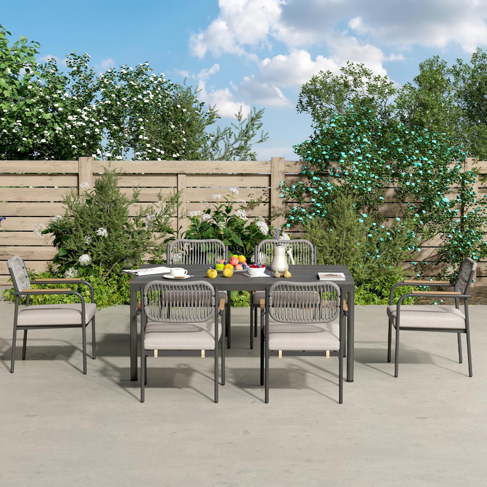7 Pieces Patio Dining Set, Wicker Outdoor Dining Chairs with Rectangular Table