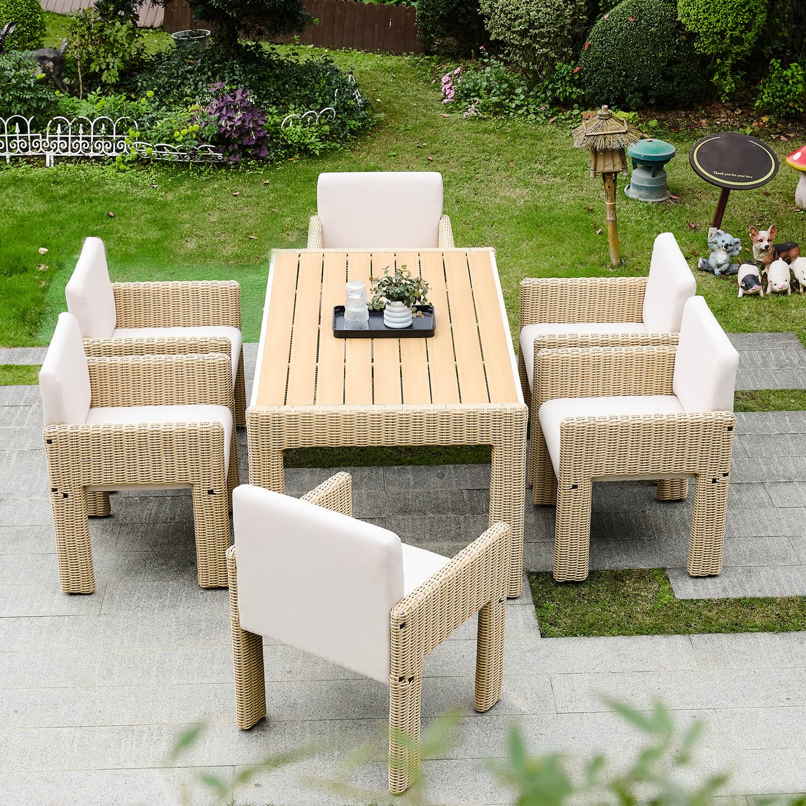 - Installation And Maintenance: The outdoor dining chair set features an easy-to-assemble design with clear instructions for quick setup. In addition, the water-resistant material makes cleaning a breeze, and all you need to do is simply wipe it down and it's good as new. Scene for a relaxing outdoor retreat with this 7-piece outdoor dining set