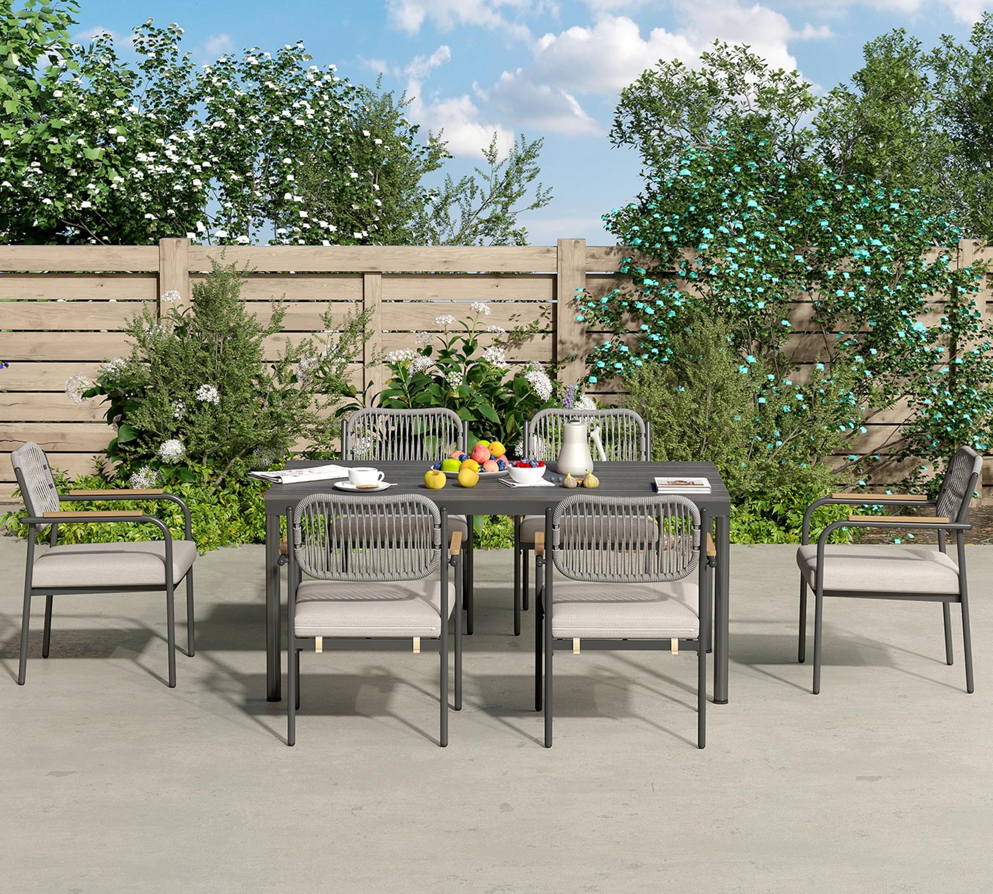 Wicker Outdoor Dining Set for 6, Upholstered 7 Piece Patio Dining Set with Armrests