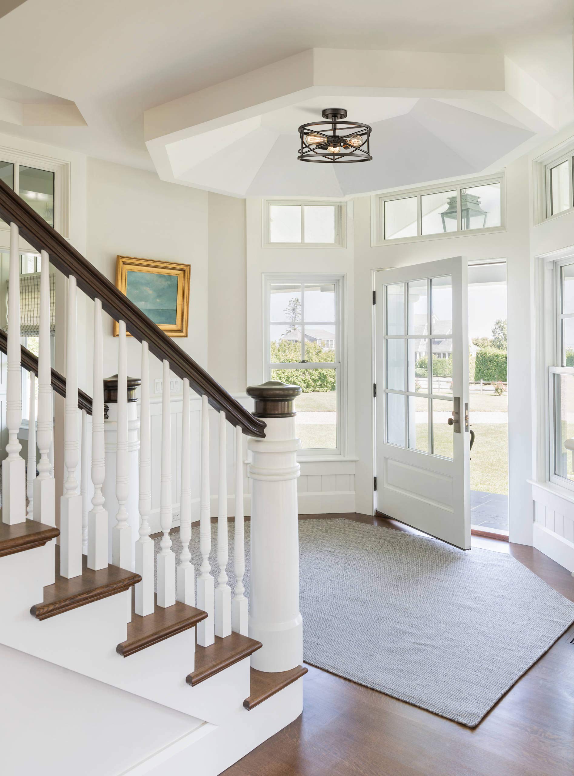 - Modern Rustic: Classic drum shade design with a entangled metal shape to cast a great lighting, with all-matching black finish, the semi flush mount ceiling light easily blends in any decor