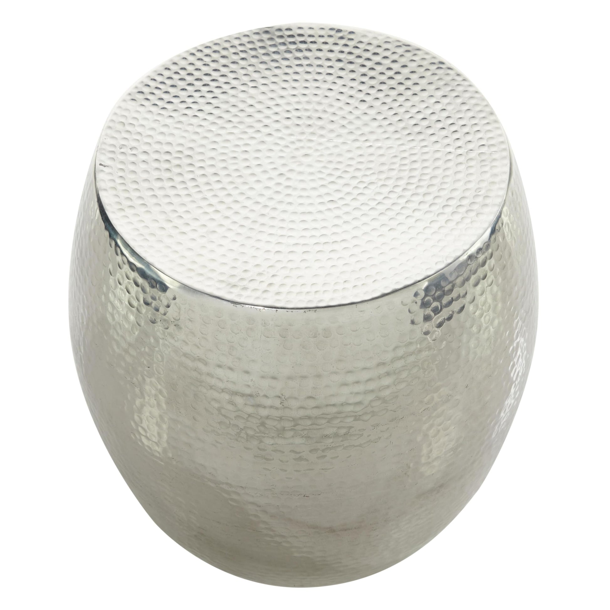 - FEATURES ROUND ACCENT TABLE: Silver accent table features a hammered designed pattern in an drum shaped structure and adds a playful feel in any space