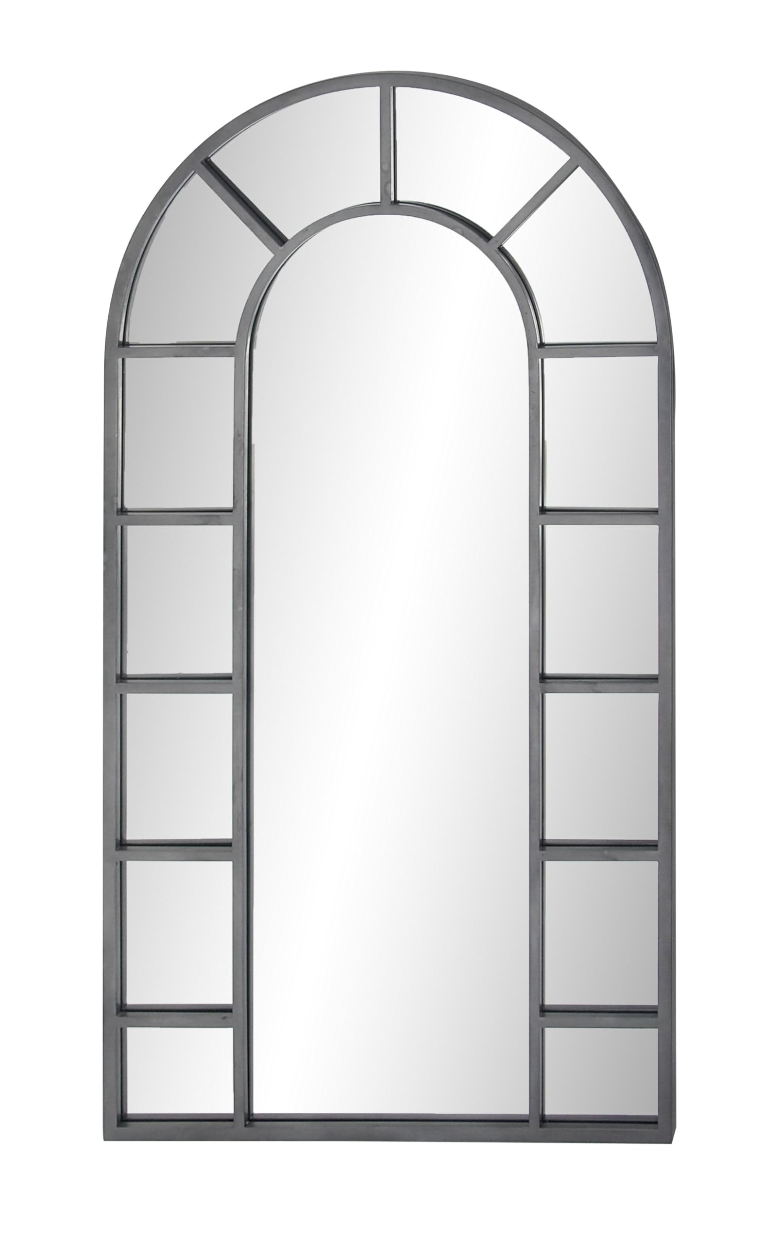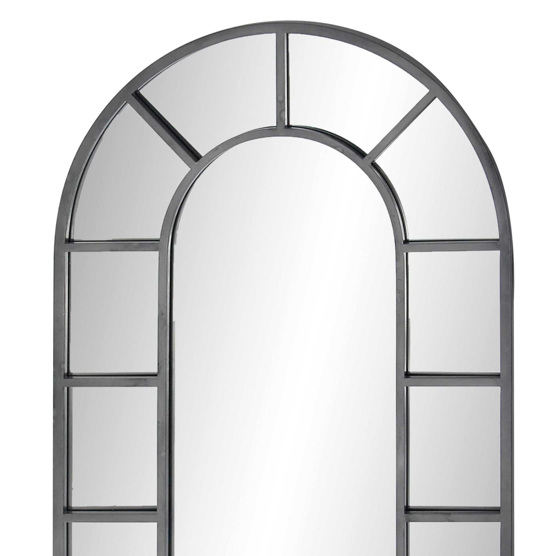- ARCHED ACCENT WALL MIRROR: This floor mirror features a window-style metal overlay with 14 pane divisions