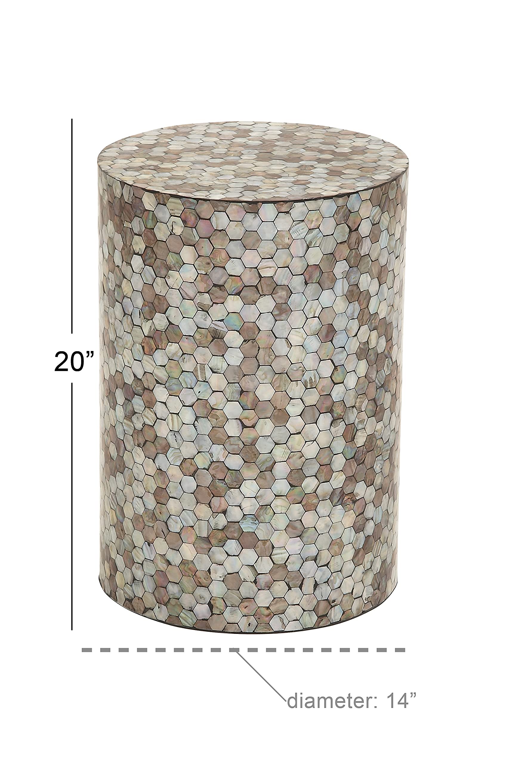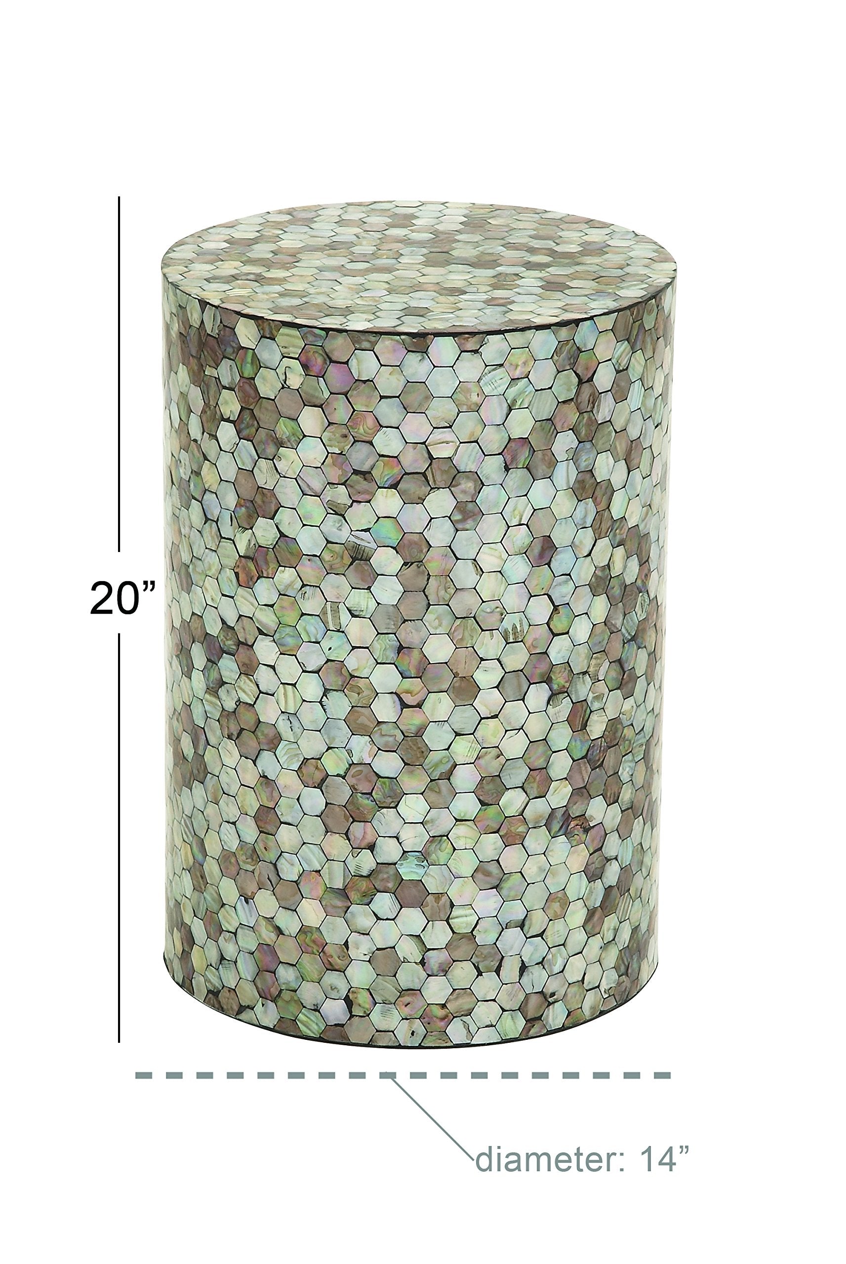 Deco 79 Mother of Pearl Shell Geometric Handmade Side End Accent Table, 14" x 14" x 20", Multi Colored