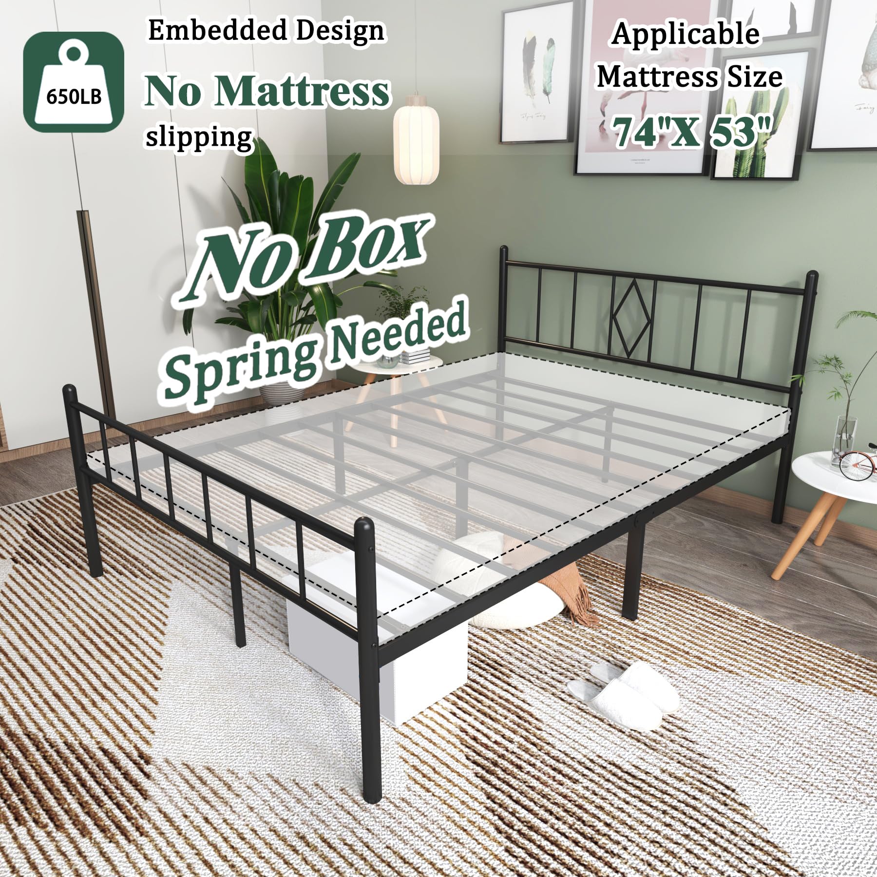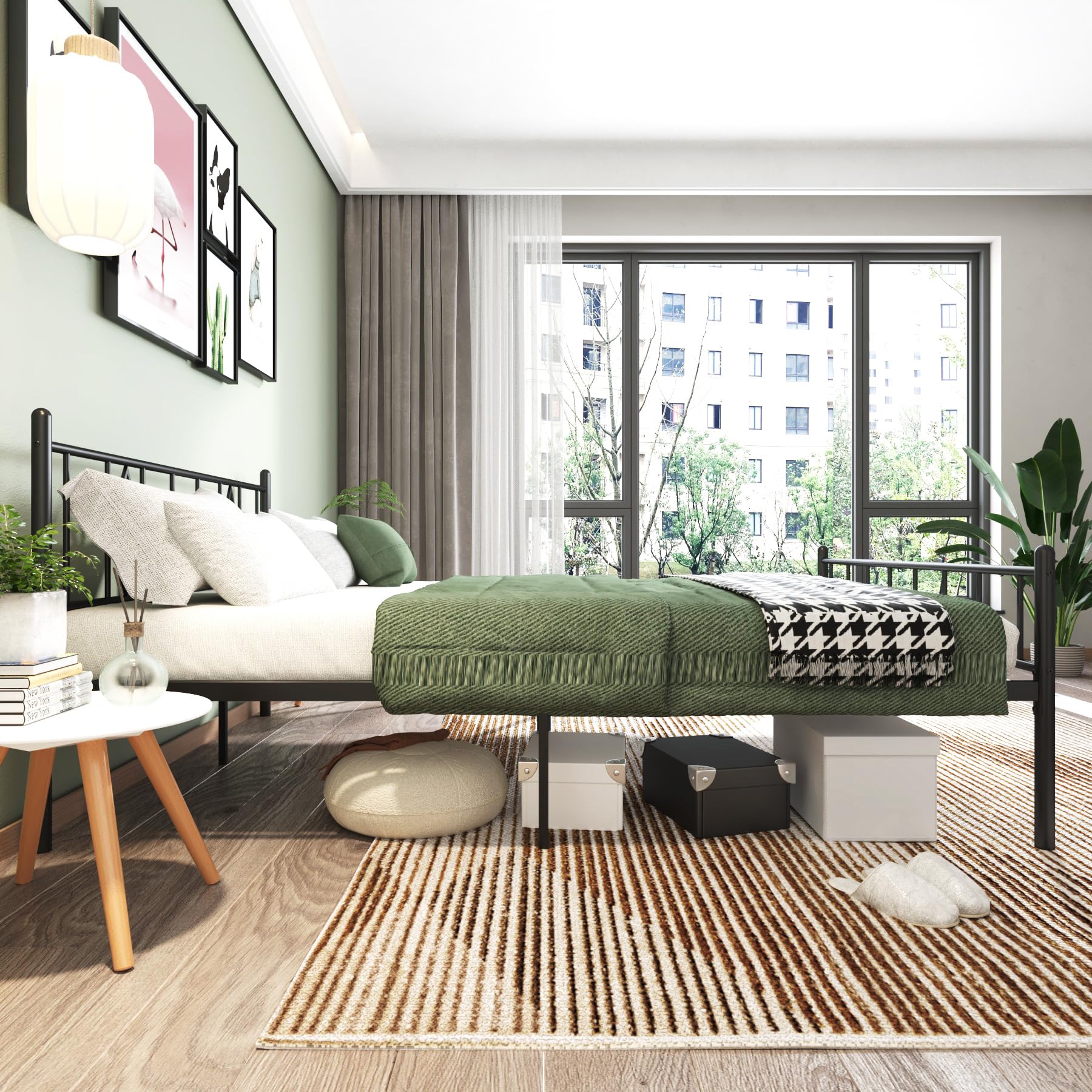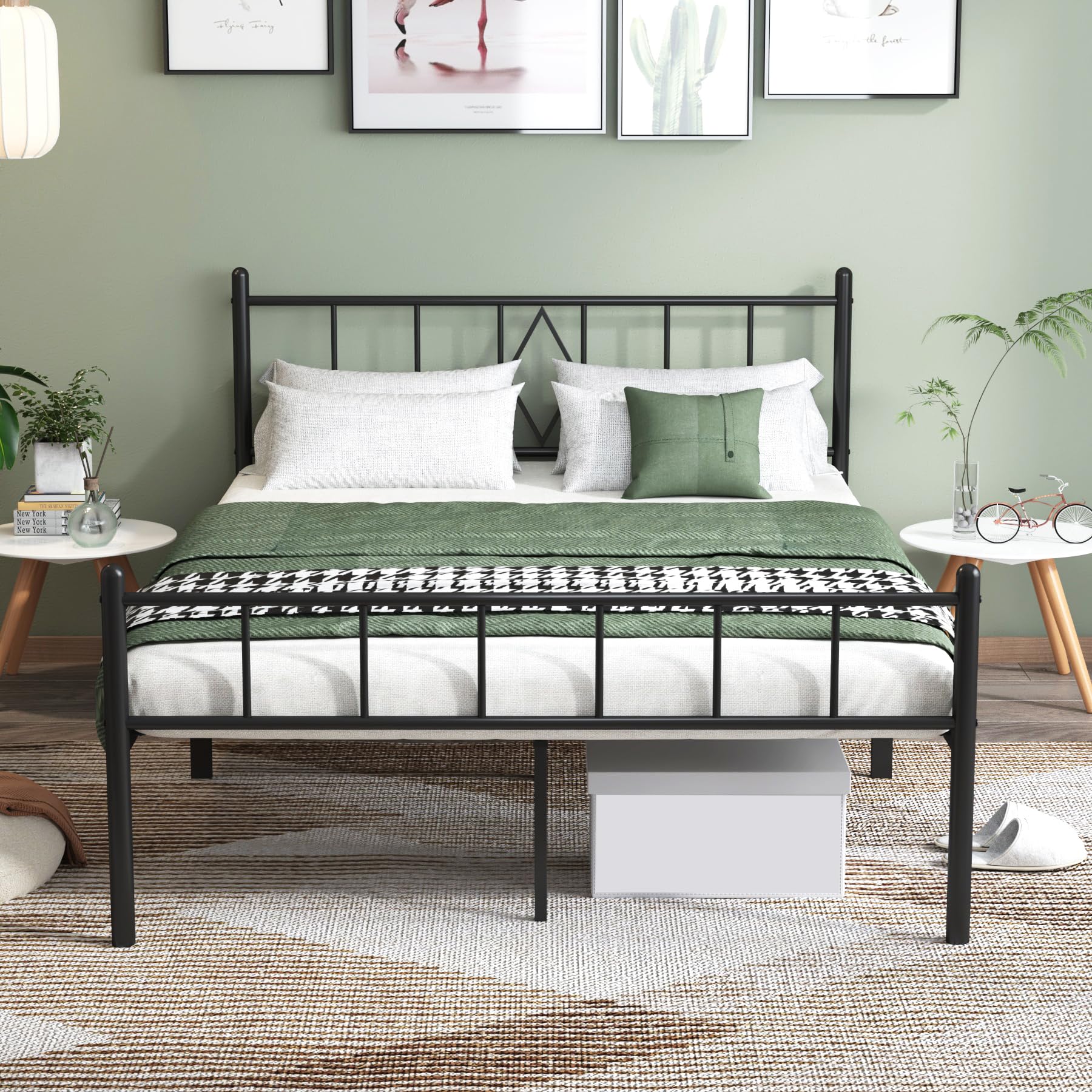 - This carefully designed metal platform bed with rounded corners, smooth surface and protective foot pads makes it safer for our customers to use. In addition, high foot boards prevent bedding from falling onto the floor while you sleep.
