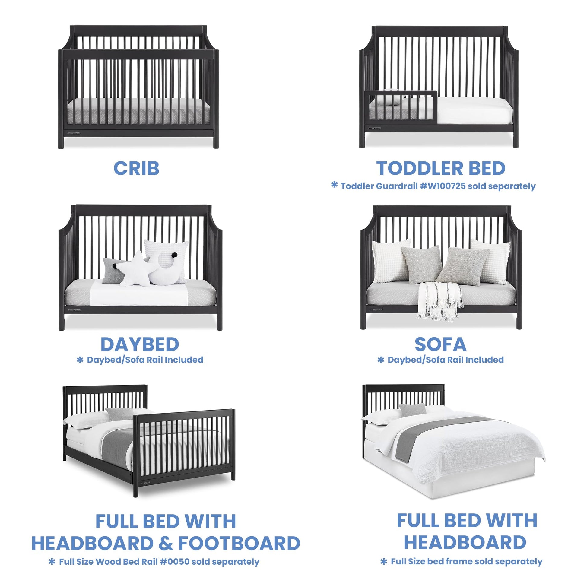 - 6-IN-1 CONVERTIBLE CRIB: Crib converts to a toddler bed, daybed, sofa, full size bed with headboard & footboard, as well as a full size bed with headboard only (Daybed/Sofa Rail Included - Toddler Guardrail #W100725, Full Size Wood Bed Rail #0050 and standard metal bed frame for headboard only conversion, sold separately) Available in Bianca White and Midnight Grey