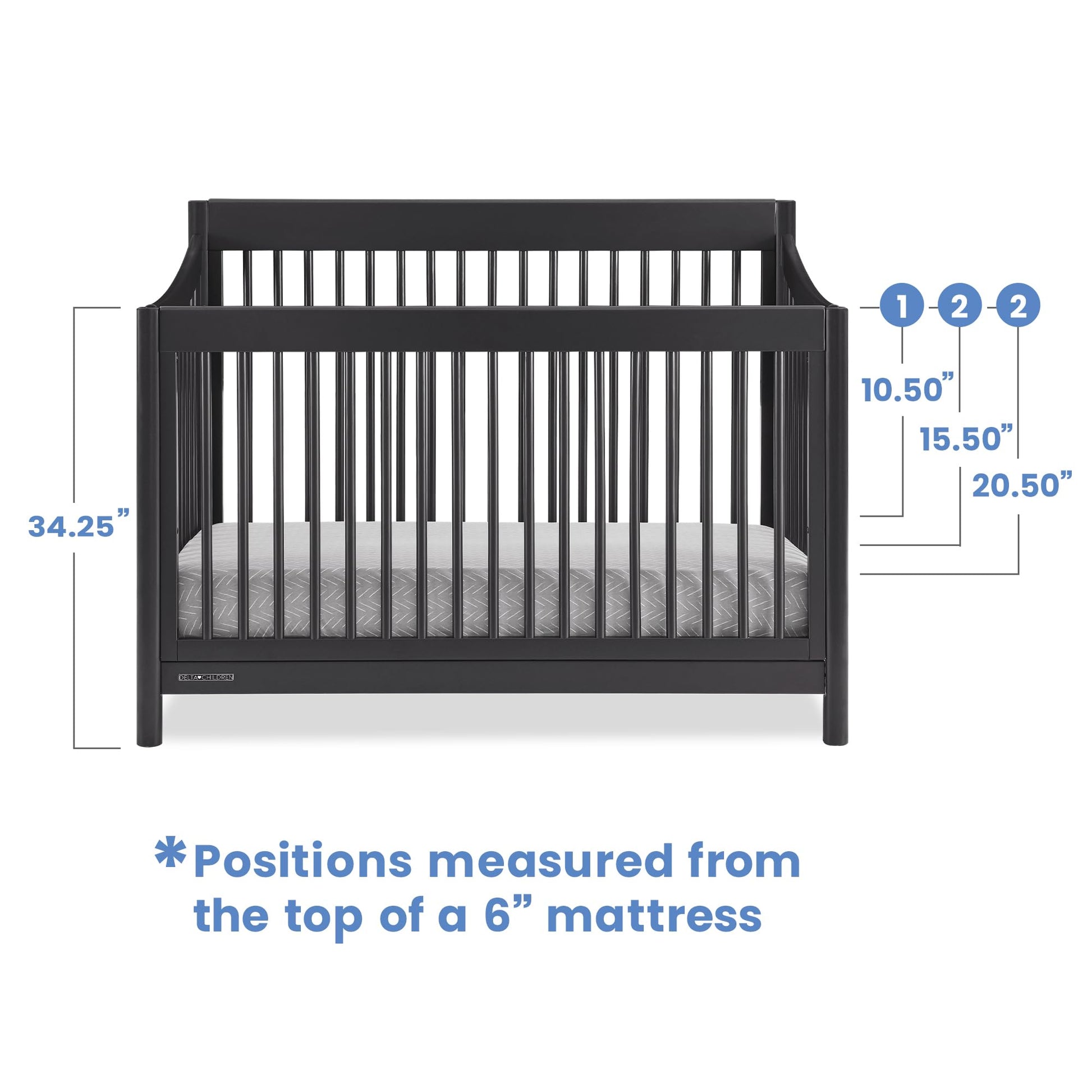 - ADJUSTABLE HEIGHT: Adjustable height mattress support with 3 convenient positions to grow with your baby | ACCESS RAIL DIMENSIONS: From Floor: 34.25"; From Top Mattress Support Position: 16.25"; From Bottom Mattress Support Position: 26.50"