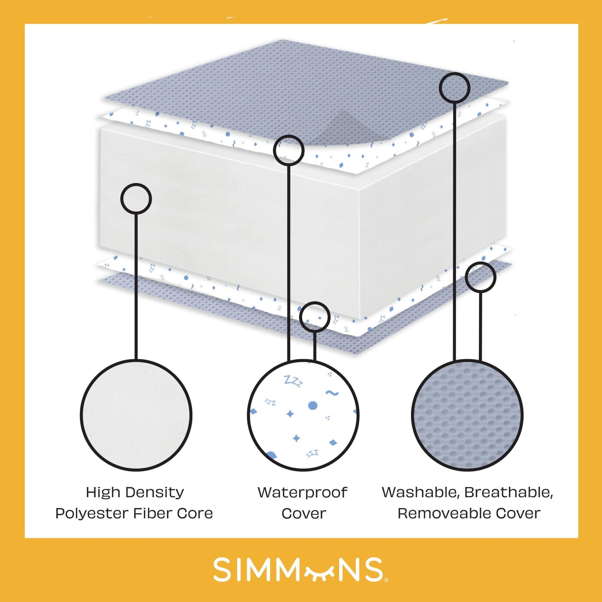 - BREATHABLE & MACHINE WASHABLE: 100% breathable cover with 3-dimensional structure allows air to flow through fabric and under baby | Removeable/machine washable cover makes cleanup easy | Waterproof encasement wipes clean and is hypoallergenic
