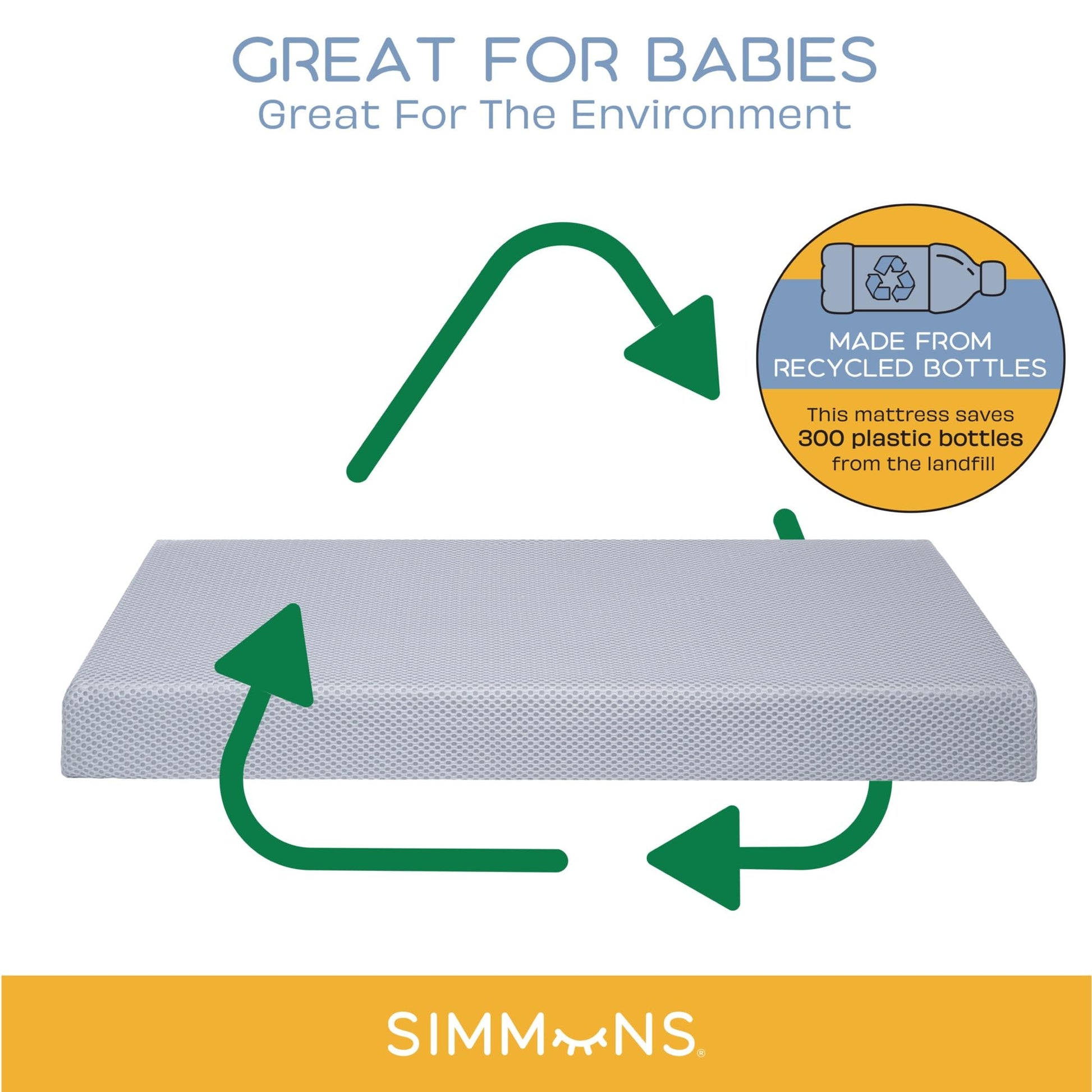 - MADE FROM RECYCLED MATERIALS: Breathable fiber core made from recycled bottles delivers the ideal firmness level for newborns, infants and toddlers while helping save over 300 bottles from the landfill--great for babies, great for the environment