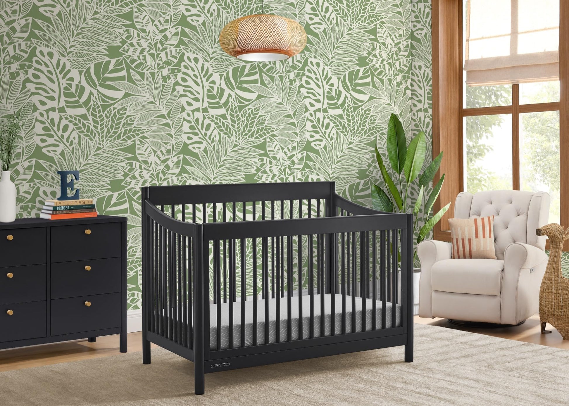 Brooks 6-in-1 Convertible Crib, Midnight Grey + Simmons Kids Quiet Nights Breathable