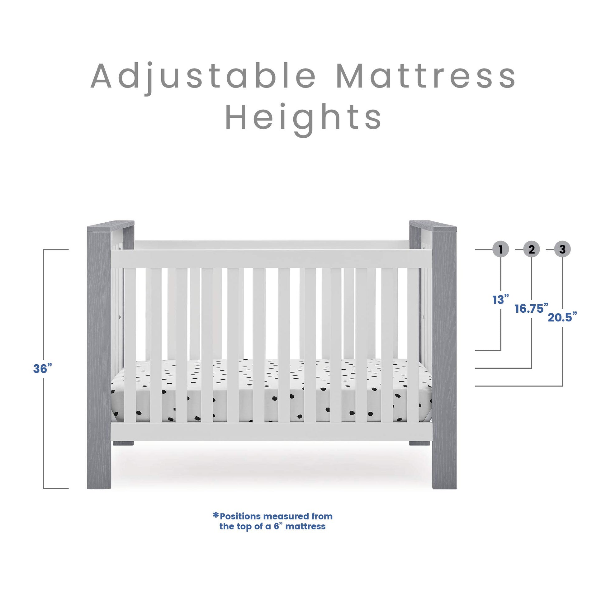 - ADJUSTABLE HEIGHT: Adjustable height mattress support with 3 convenient positions to grow with your baby