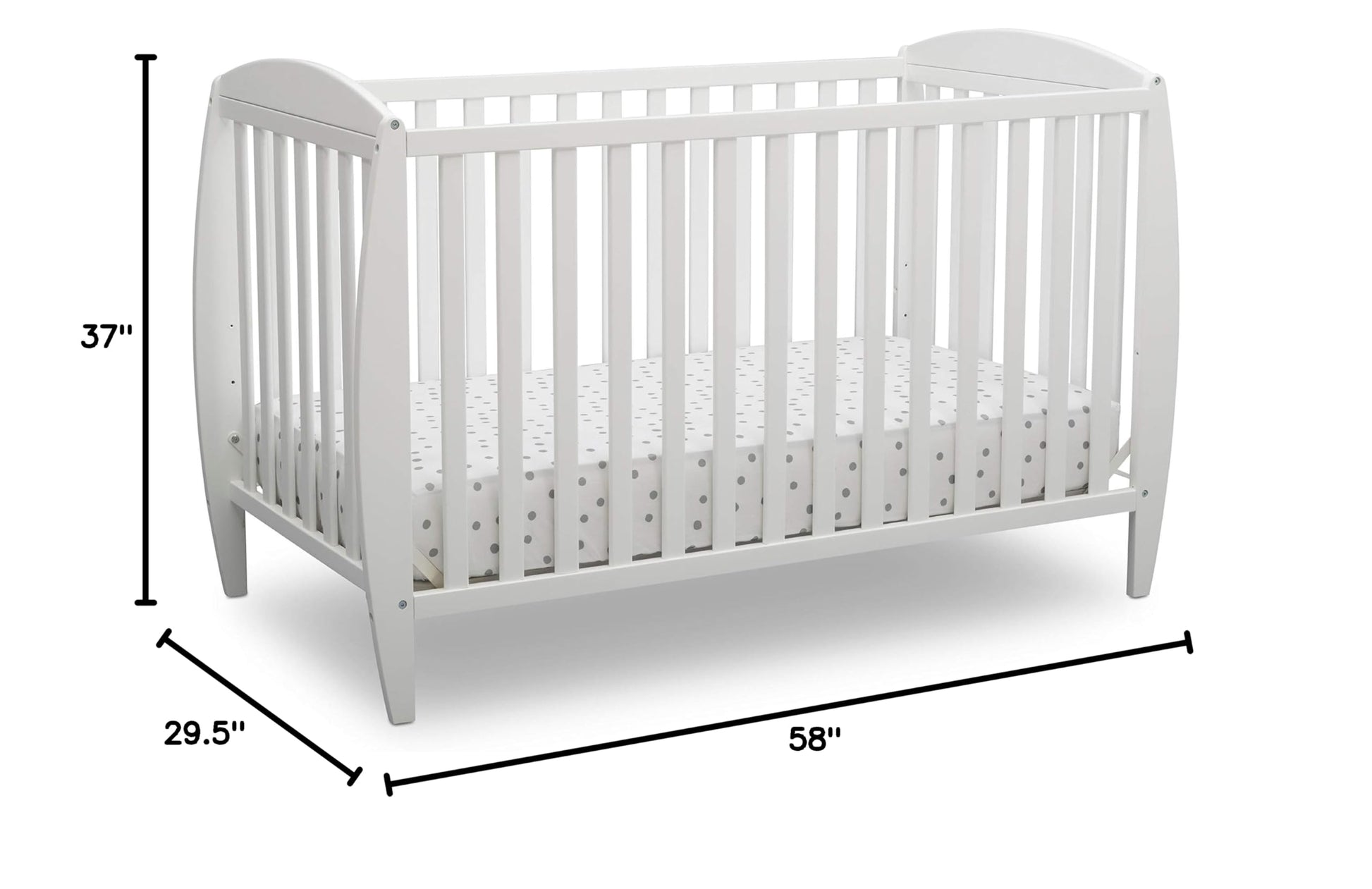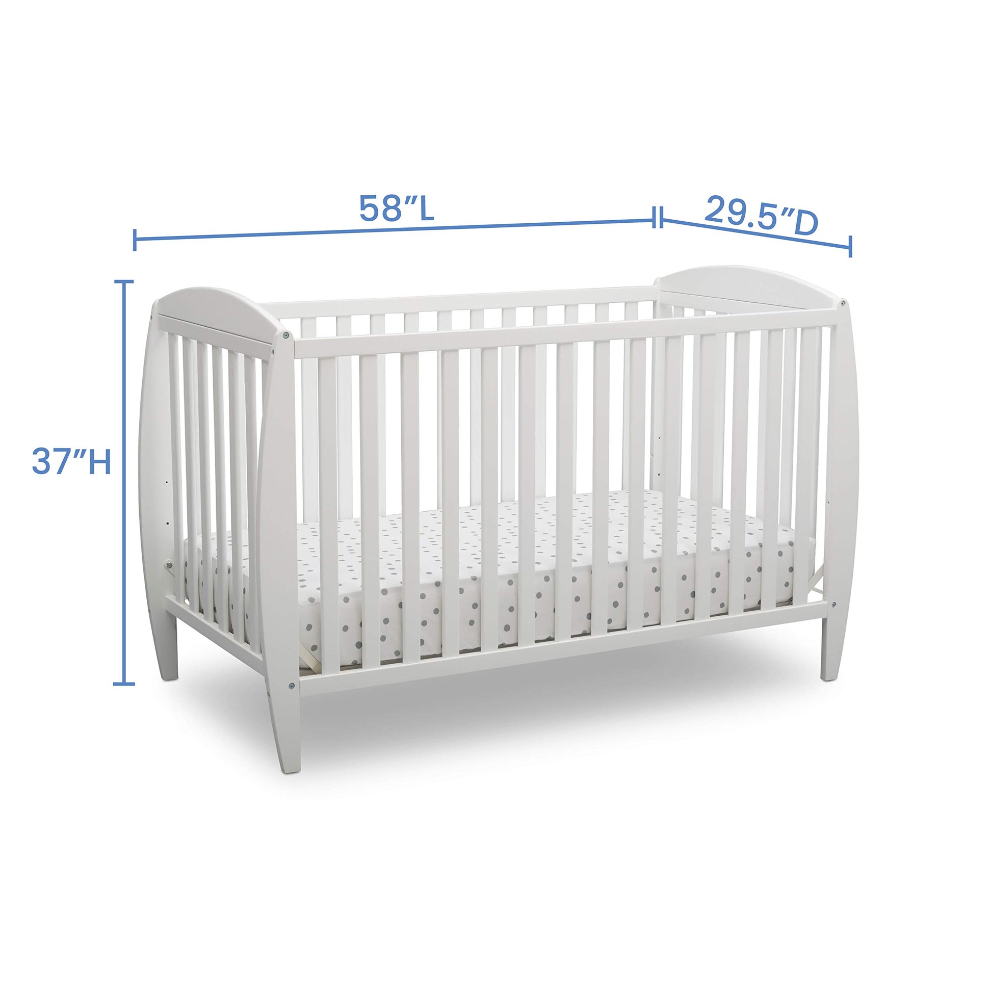 - SIZE: 58 inch W x 29.5 inch D x 37 inch H; Fits standard size crib mattress (sold separately); Cuna para bebe que se convierte en una cama para nino/nina, sofa cama y cama de tamano completo