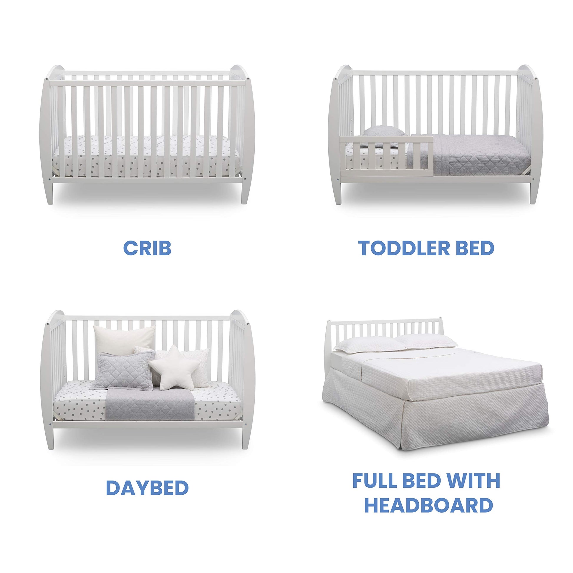 - CONVERTIBLE CRIB: Converts from a baby crib to a toddler bed, daybed and full size bed (Daybed/Toddler Guardrail Kit 555725 and Full Size Bed Frame 0040 sold separately); Available in Grey, Bianca White or Dark Chocolate