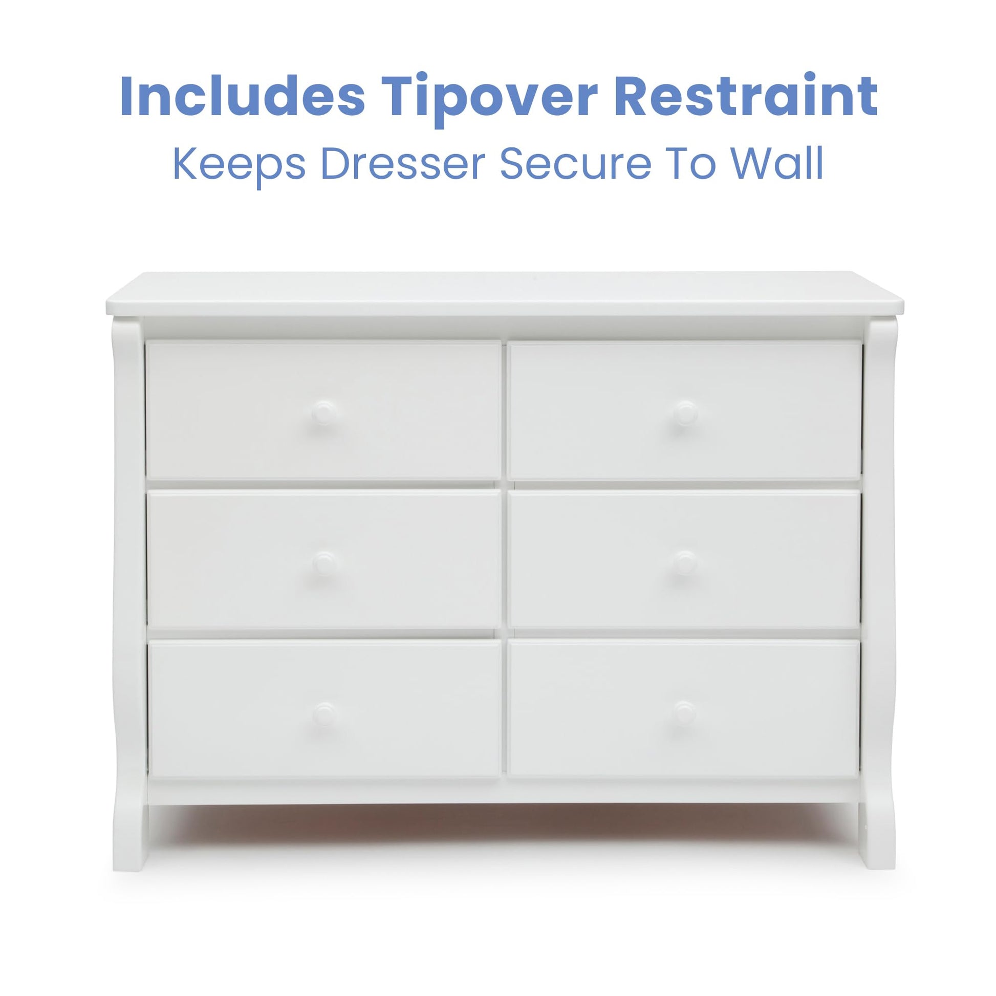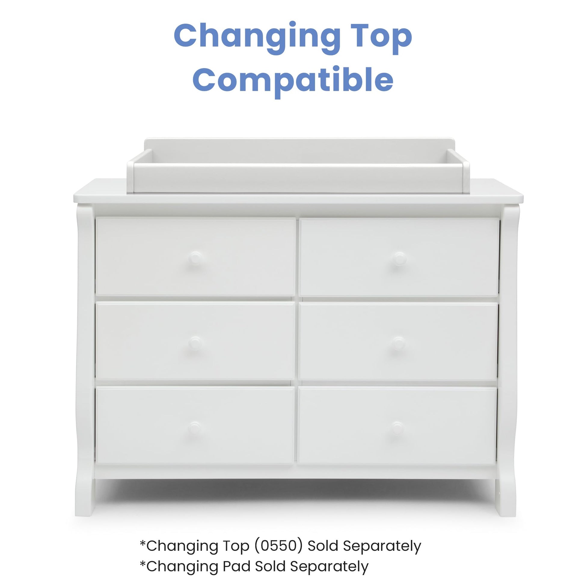 - VERSATILE STORAGE: This dresser features 6 drawers for plenty of storage space | Sleigh style silhouette offers timeless style | To convert your dresser into a convenient changing table purchase the Delta Children #0550 Topper (sold separately)