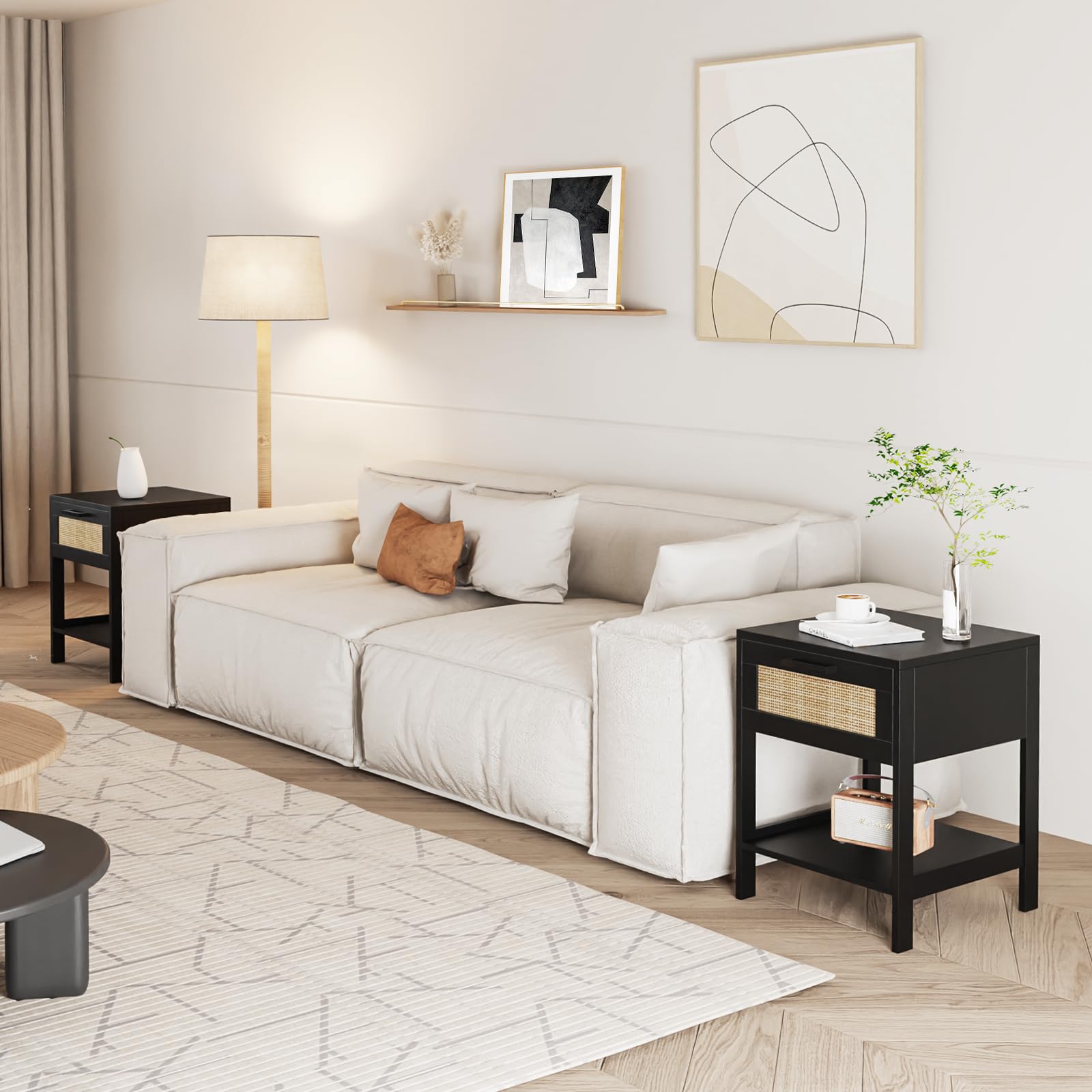 - The side table with bohemian style can be perfectly matched with any style at home, the simple design of the rattan nightstand meets various storage needs in the bedroom.It is ready to hold everything you need with easy reach.Ideal as a sofa table, corner table, night stand, end table, bedside tables, laptop desk, lamp table for your living room, bedroom.