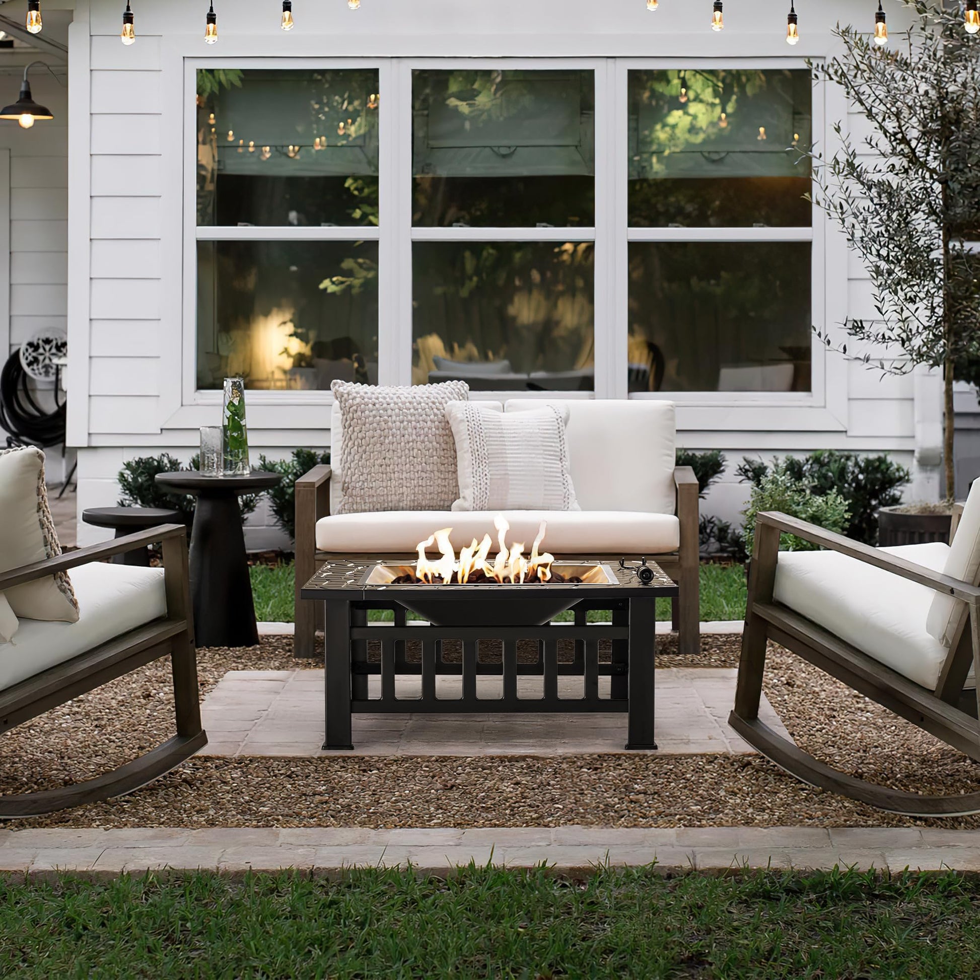 - [ Reliable Security ]: Firepit table features square design with sturdy legs for stability, while the mesh spark screen and poker provided effectively prevent sparks from flying and safely move the grill