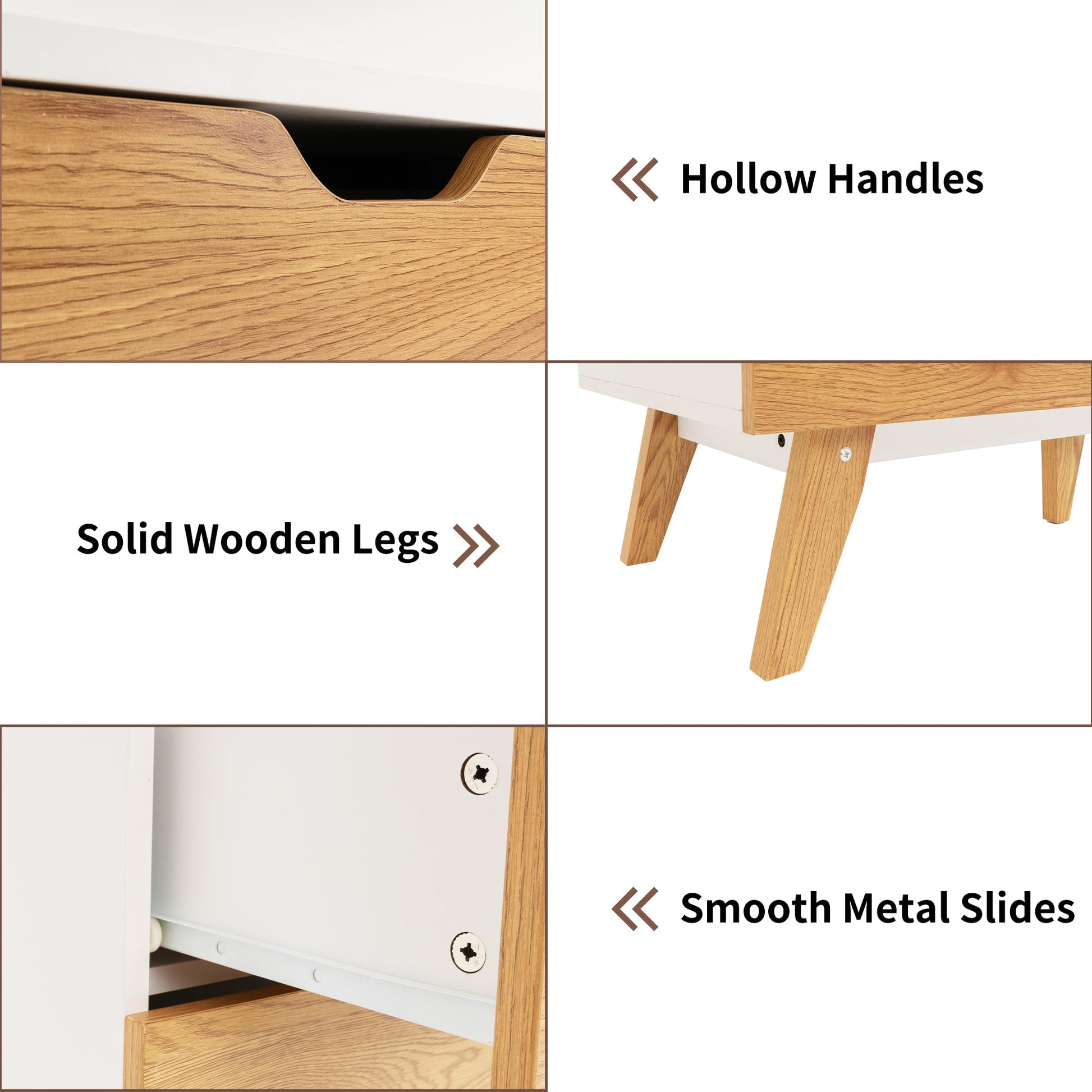 - The natural wood dresser is designed in mid-century modern style, combining a minimalist look with great storage capabilities. Dresser size: 47.2”W x 15.7”D x 29.7”H. Drawer size: 23.6”W x 12.4”D x 7”H.
