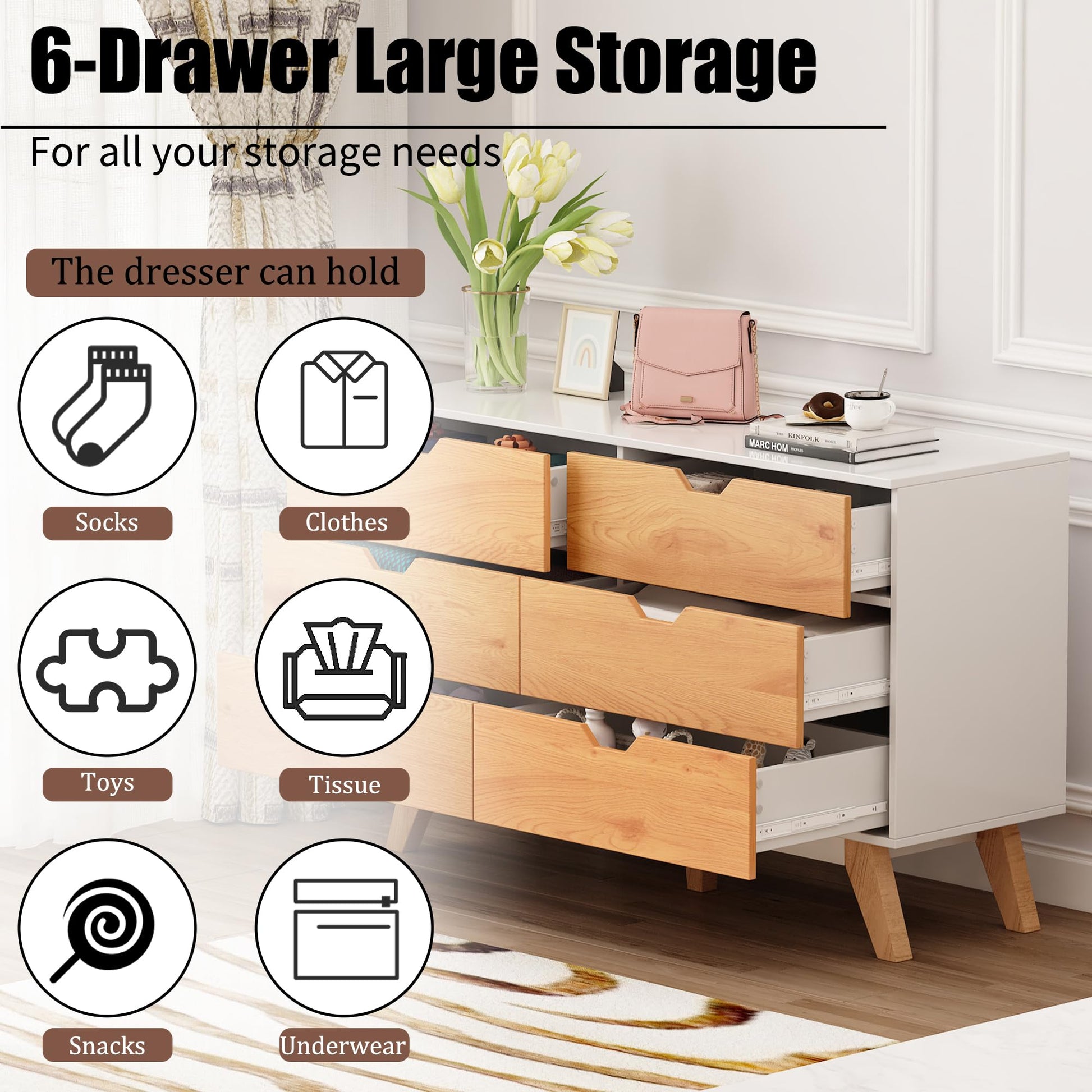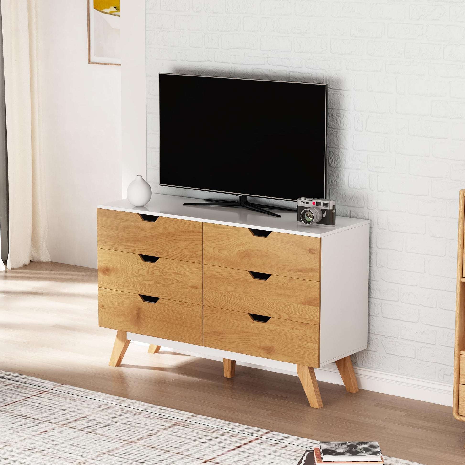 6 Drawer Dresser, Mid-Century Modern Dresser Wide 6 Chest of Drawers