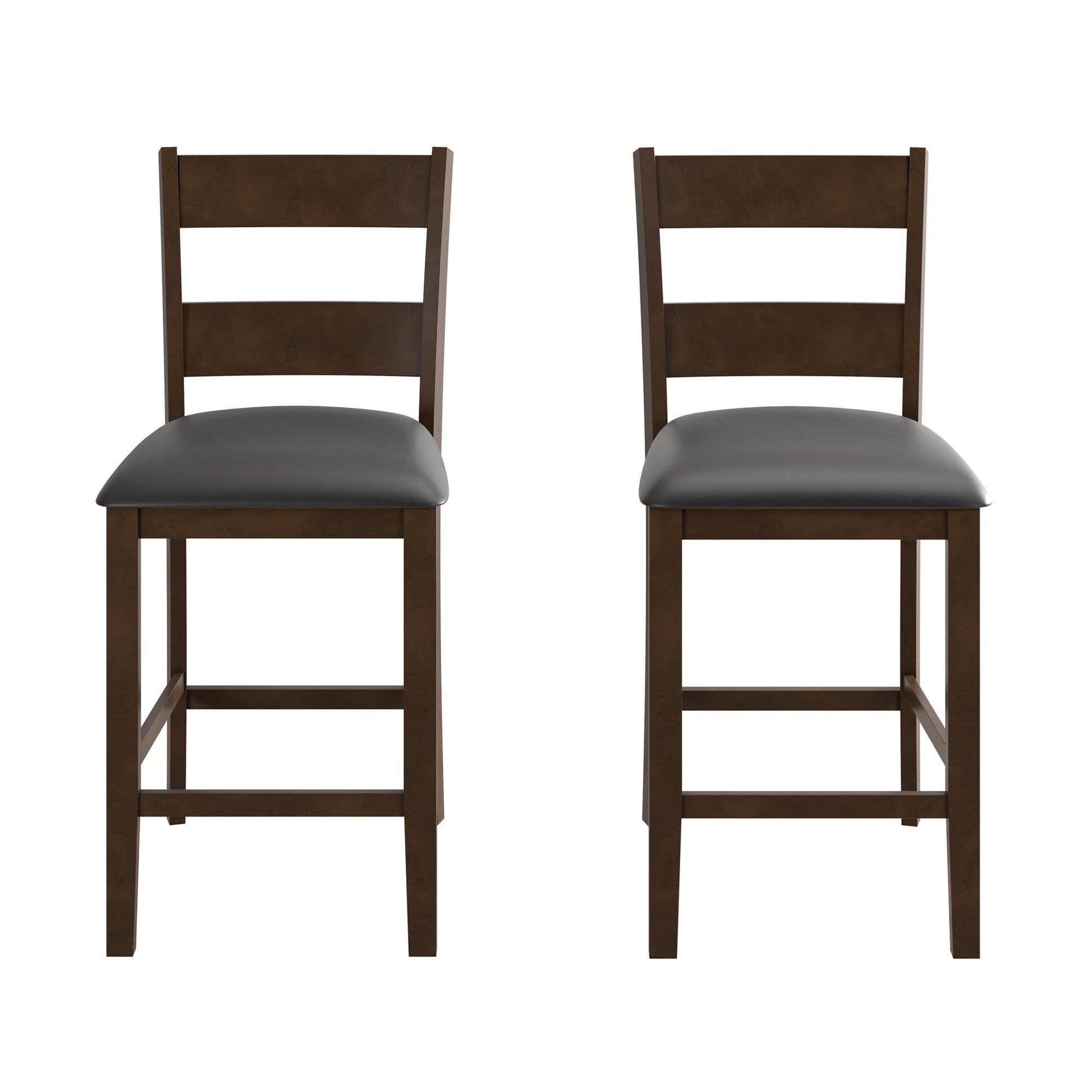 - Storage and Low Maintenance: The dining chairs feature charcoal faux leather seats with padded cushions to provide comfortable and easy-to-clean seating. The pub table comes with a handy lower shelf, having a hefty 60 lb. capacity for your storage demands