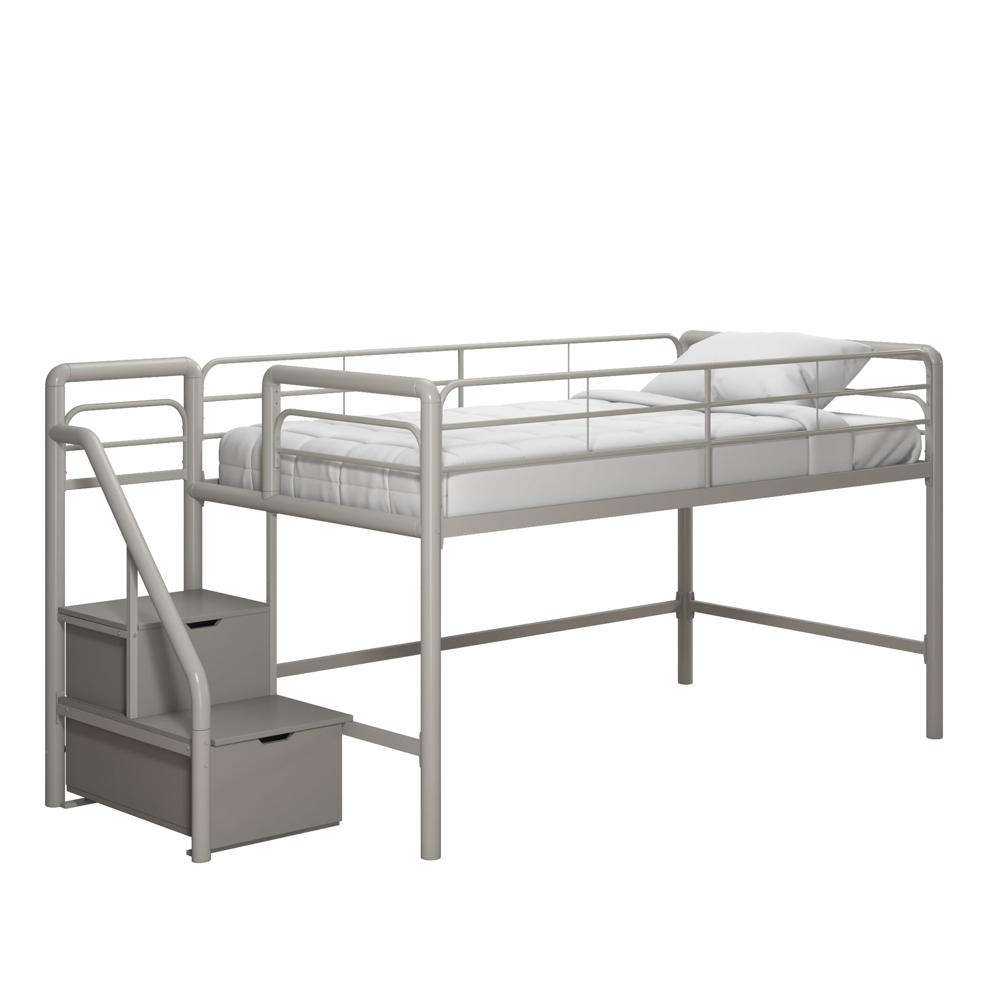 - Sturdy height metal frame with built-in ladder and full-length guardrails ideal to free up and maximize bedroom space.