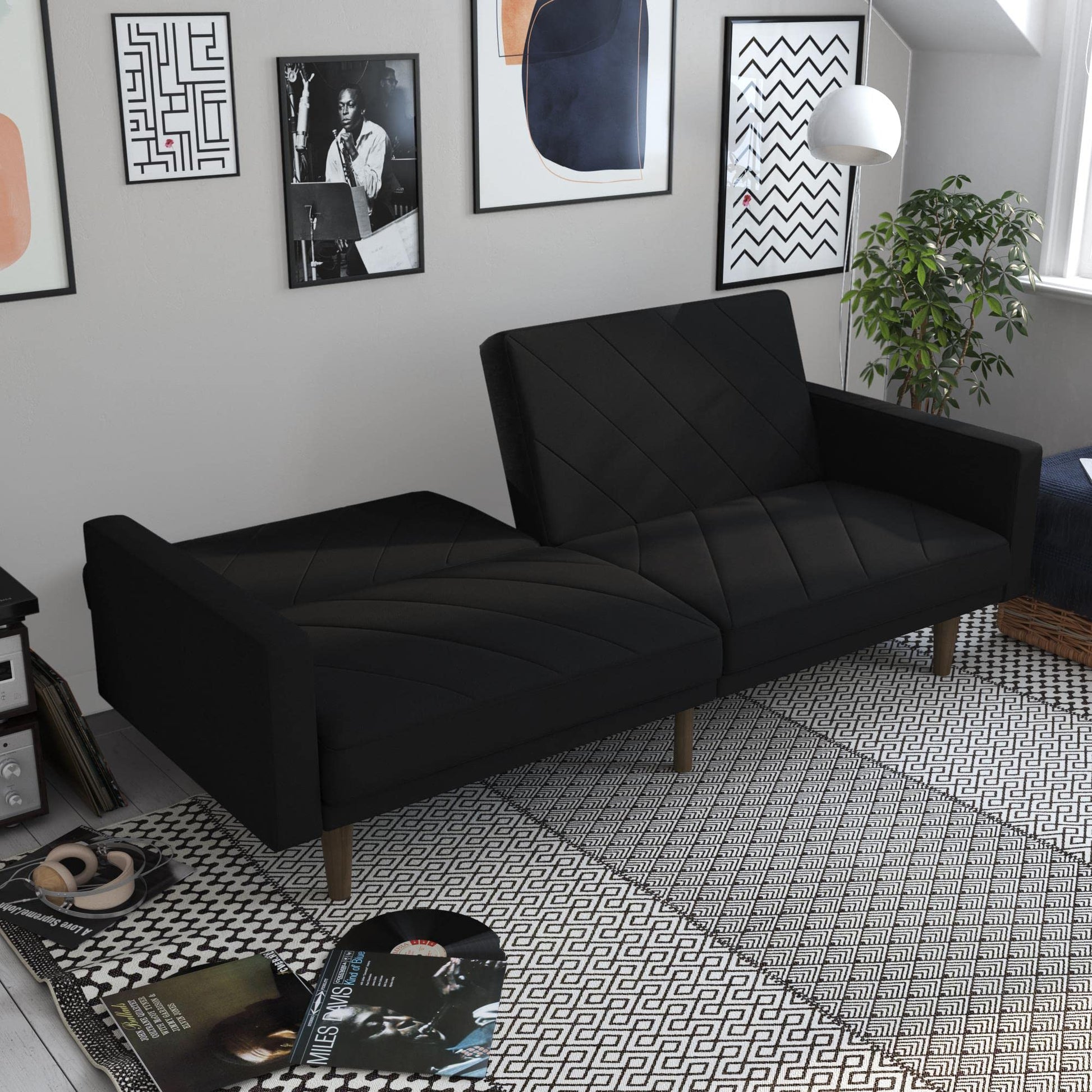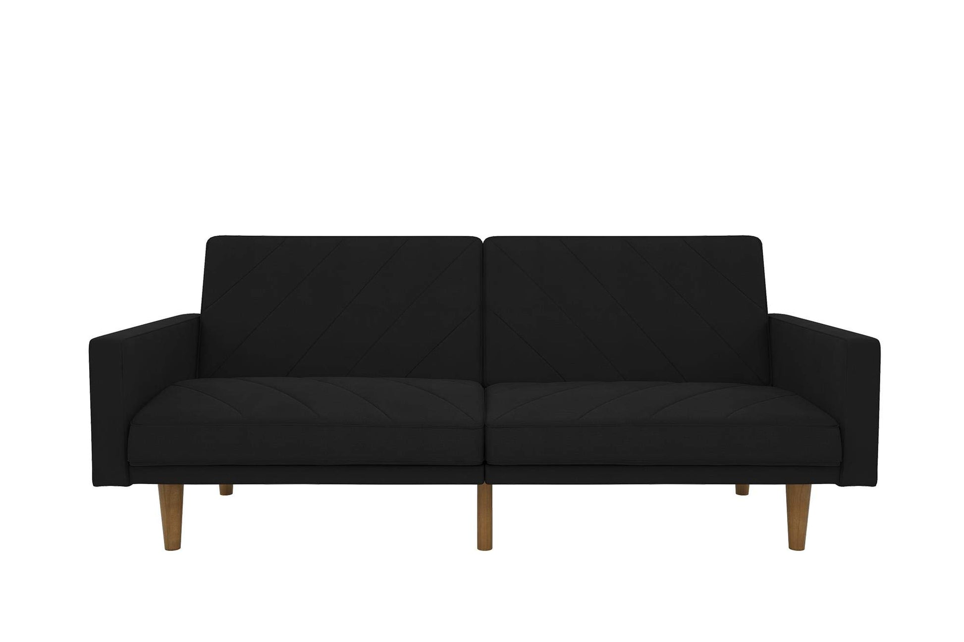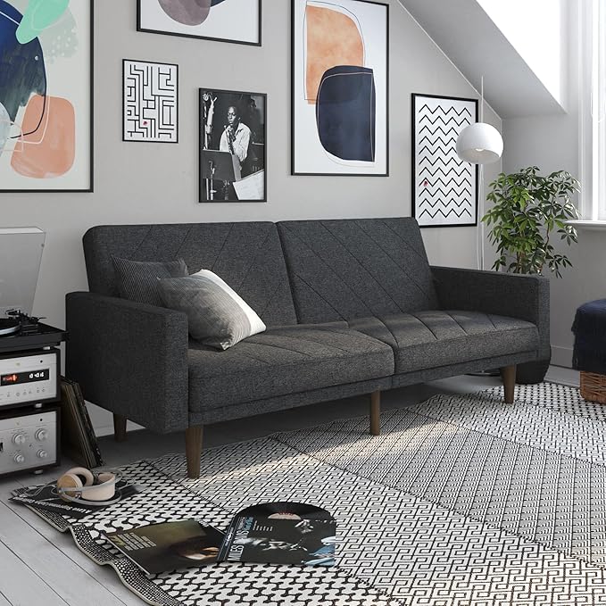 Paxson Convertible Futon Couch Bed with Linen Upholstery and Wood Legs -