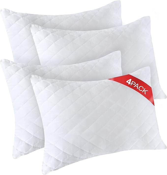 - ELEGANT COMFORT - The Diamond Elegant Queen-Size Pillow Set of 4 is a great comfort pillow that offers you the best night of uninterrupted snoozing. This luxurious, dreamy pillow is a high-quality and bulk option at an affordable price point. You and your guests will enjoy the comfort and durability inherently built into this option. It is highly recommended as a gift for your parents, family and friends.